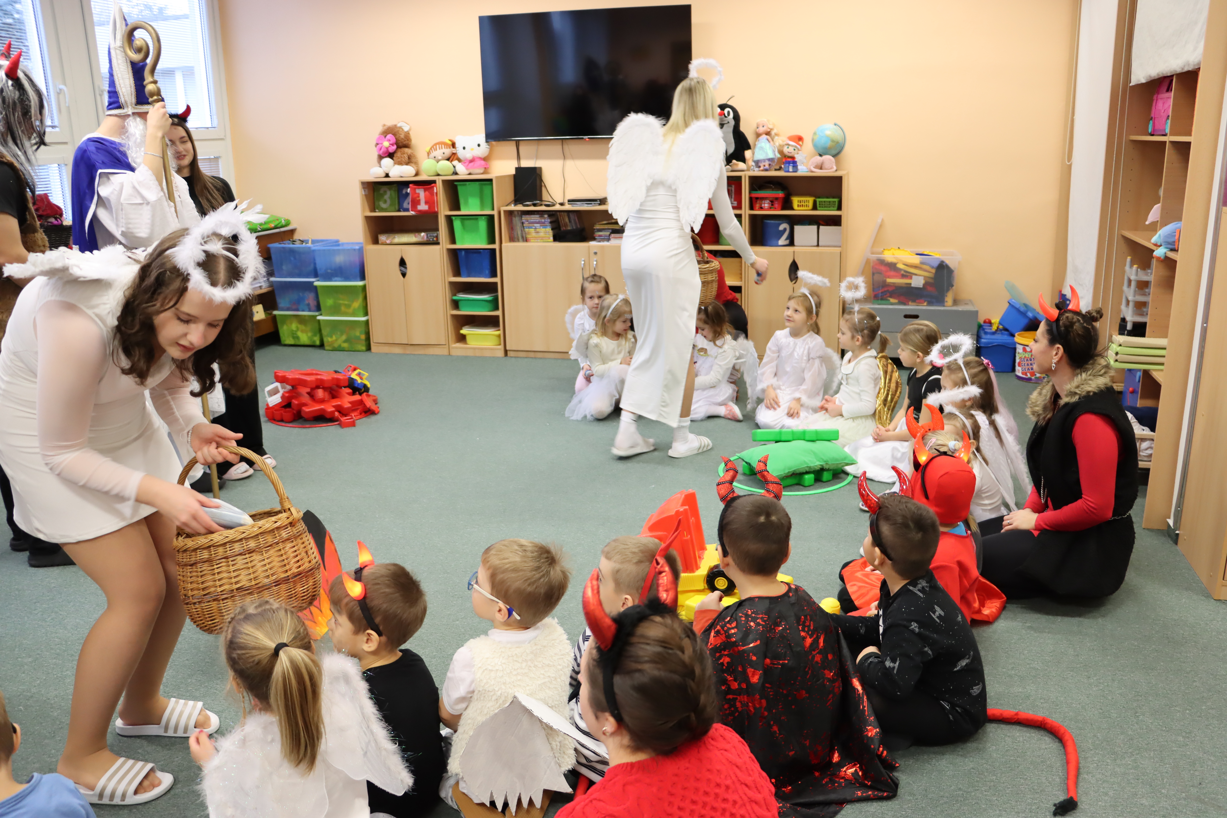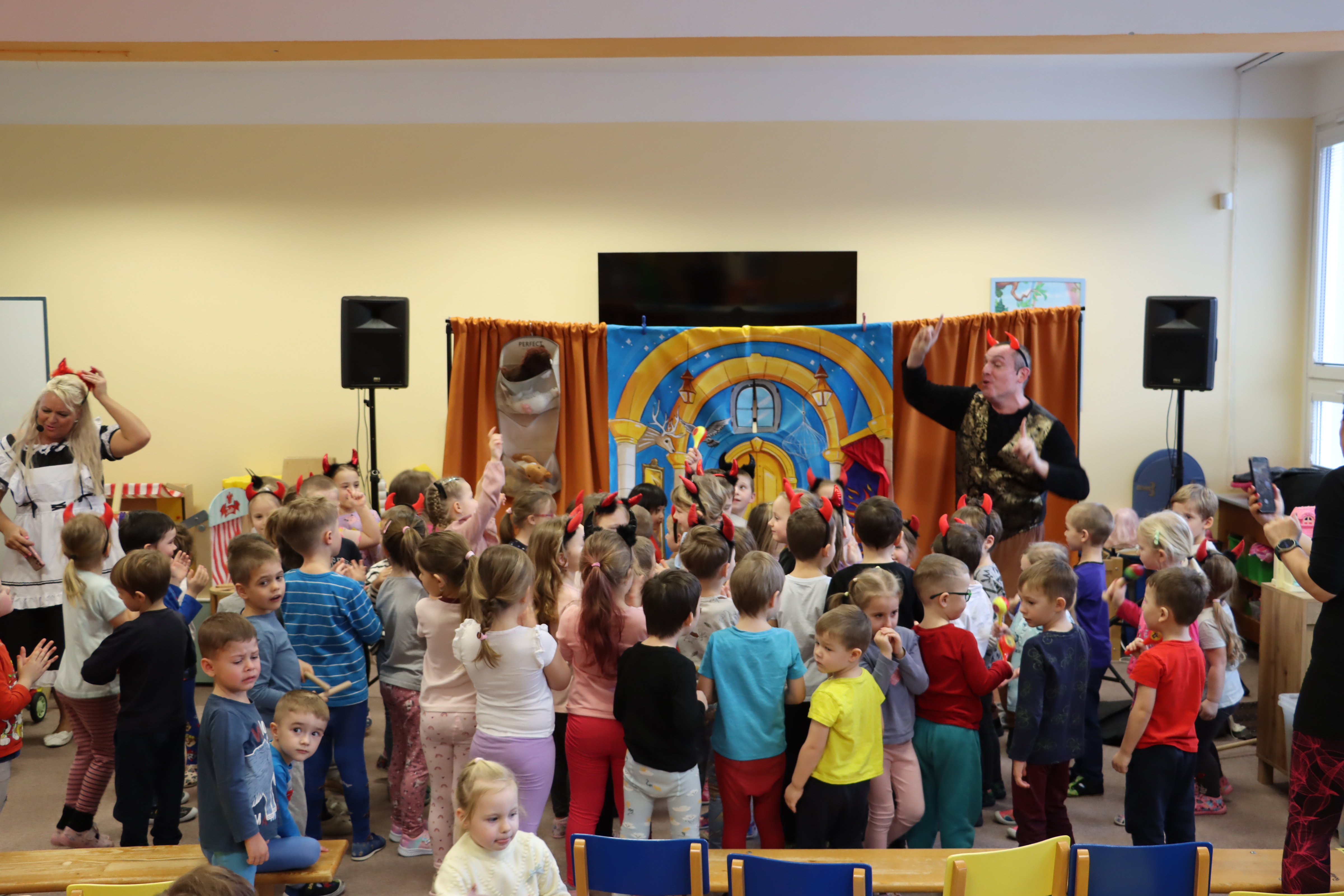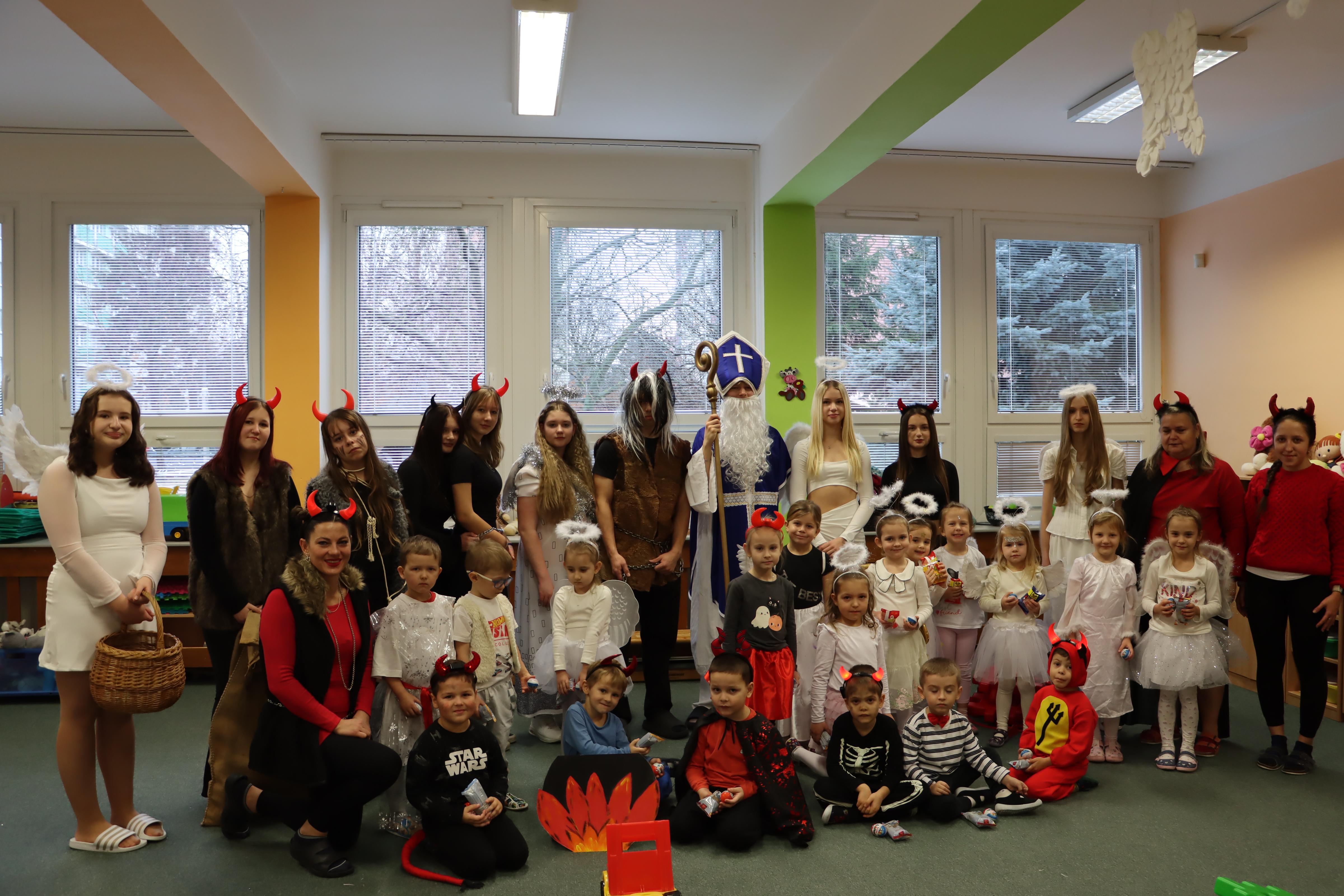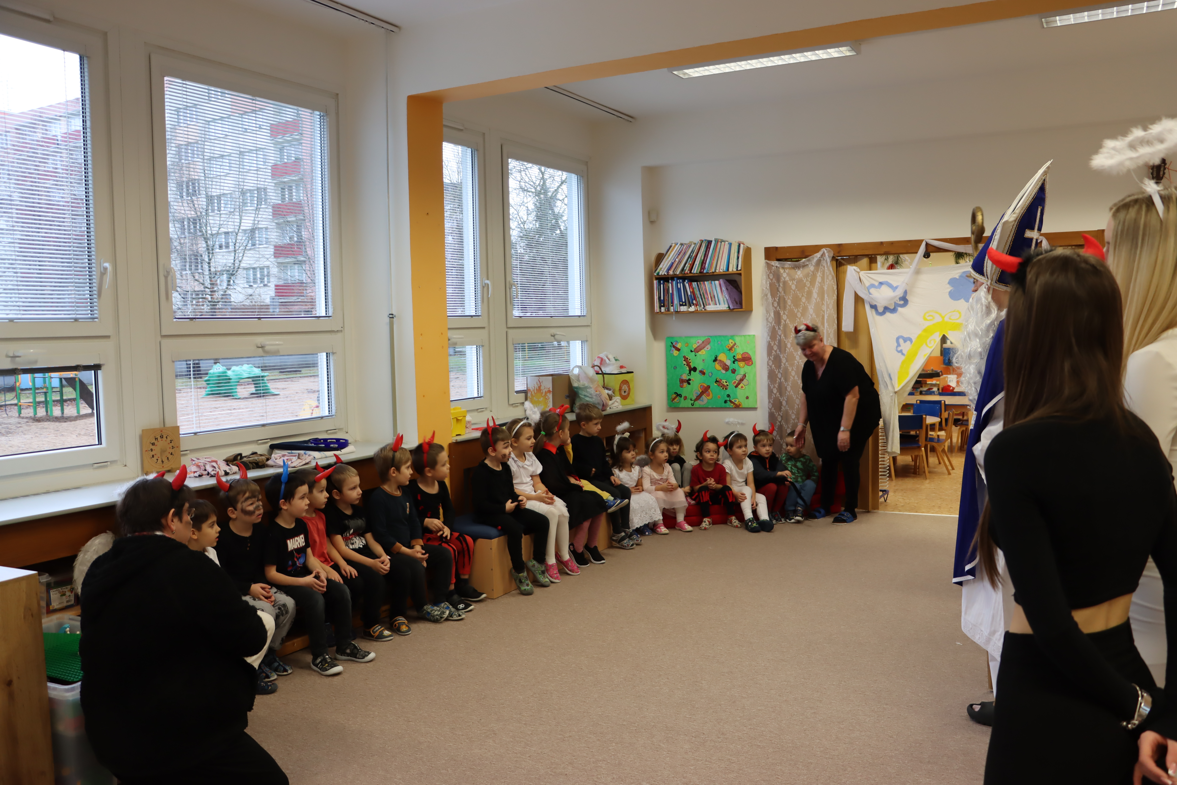 V pátek 5.12.2025 naši školku navštívila družina Mikuláše s anděly a čerty s nadílkou.