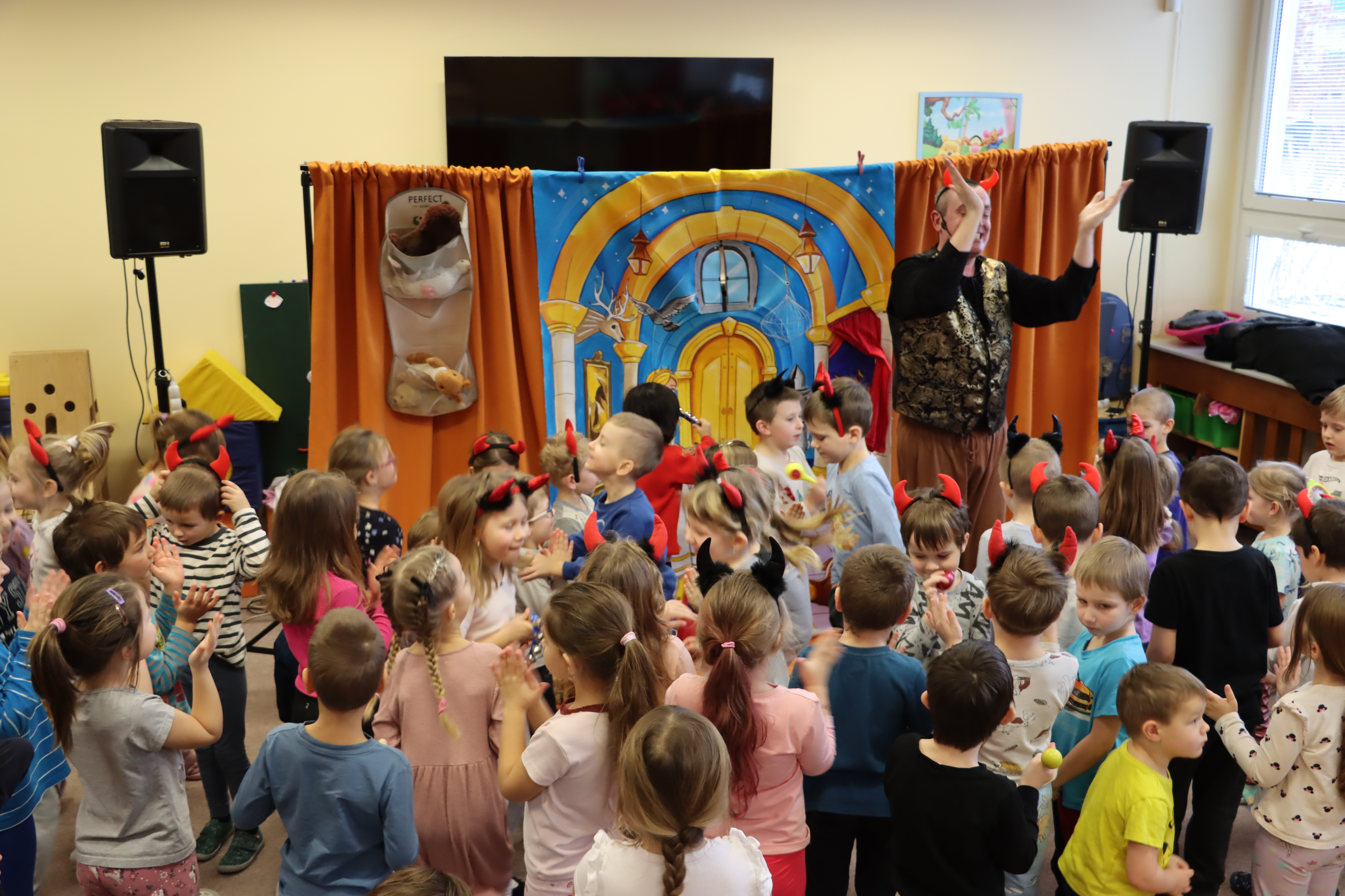 V pátek 16.1. navštívila naši mateřskou školu paní Jana Koutová a její společnost Hudební pohádky pro děti s pohádkou Čertova lest. Pohádka byla plná krásných písniček a i děti se zapojily do děje. Chvíli byly jako pomocníci komorné, rytíři na koních, tanečníci, proměnily se na zvířátka a nakonec si zahrály na čerty a některé děti i na hudební nástroje. A jak to dopadlo? Jako v každé pohádce, dobro zvítězilo nad zlem.