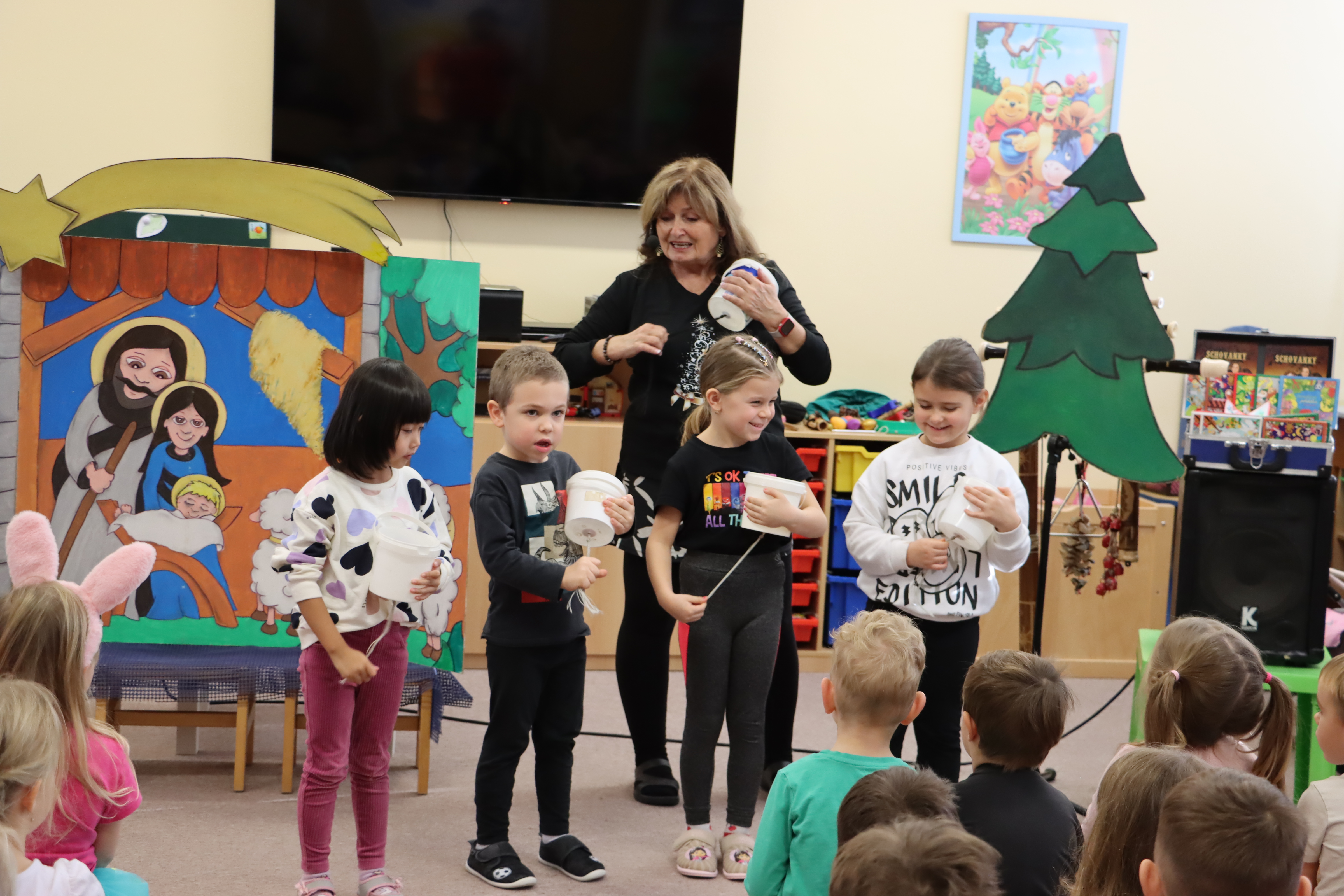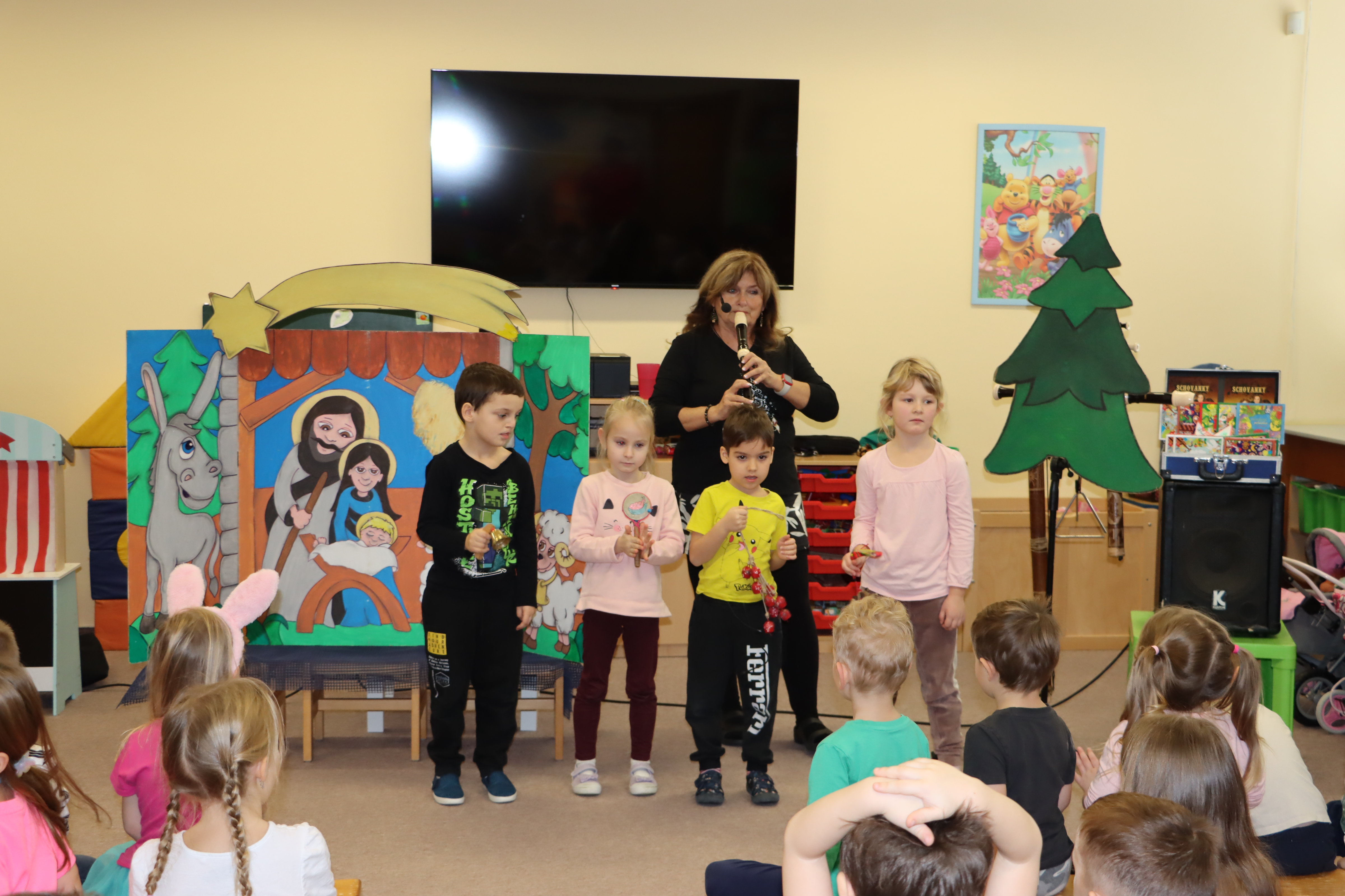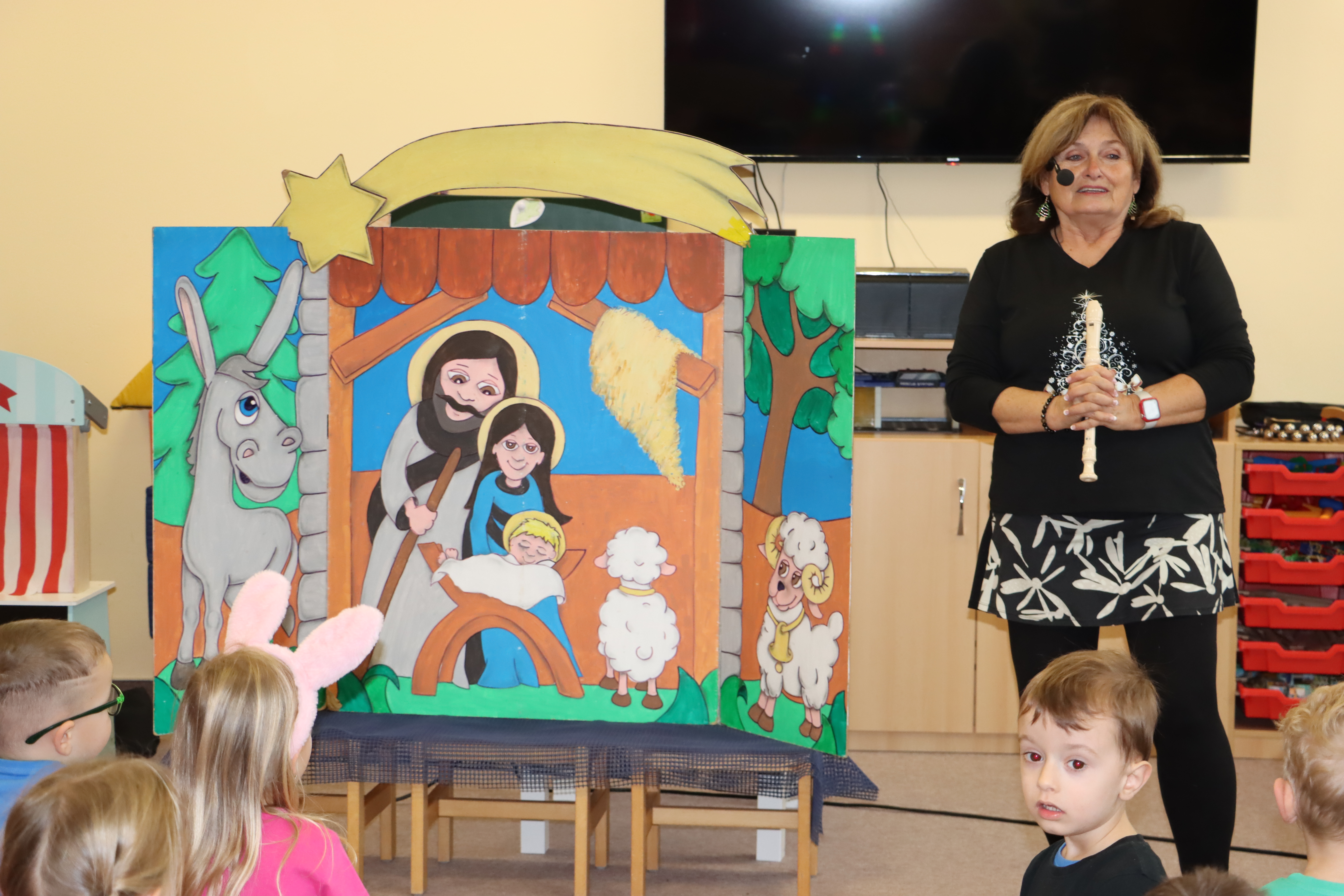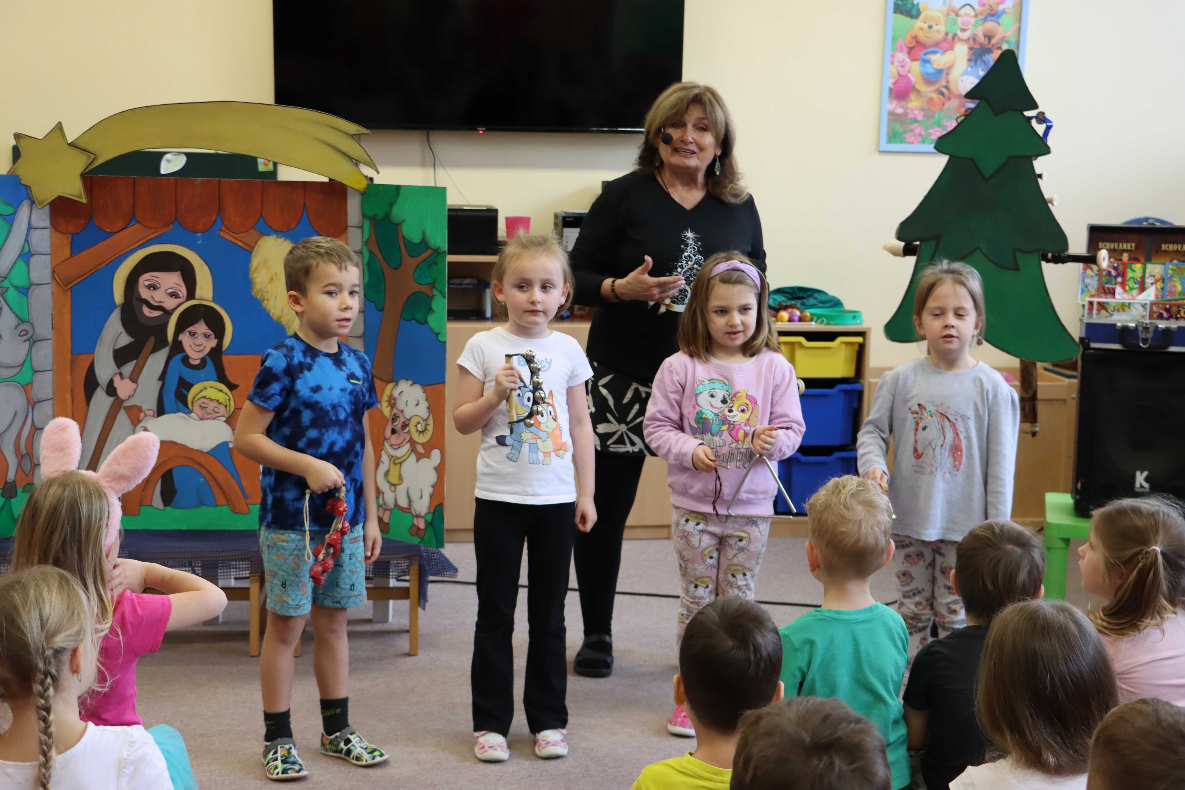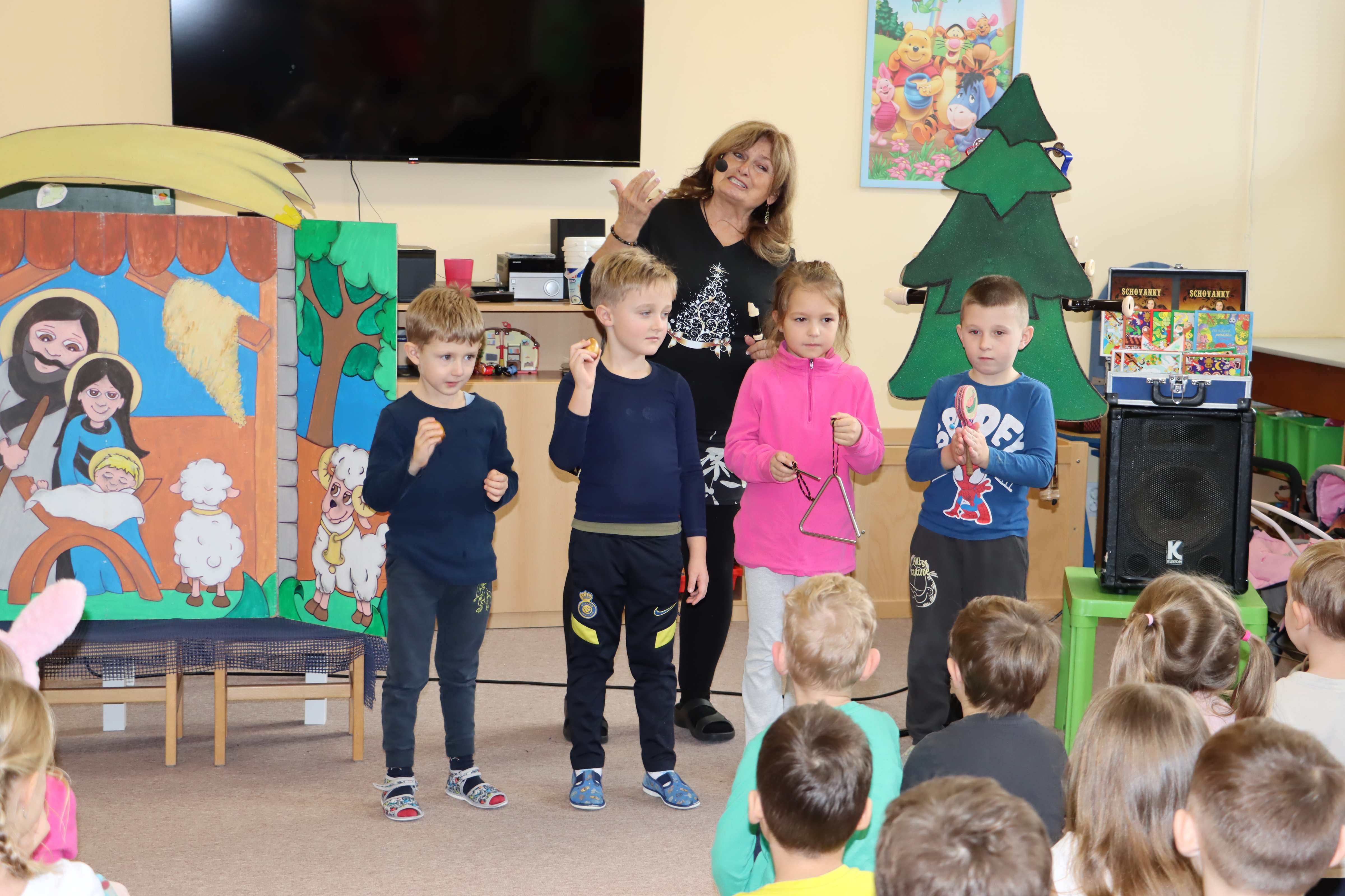V pondělí 8. 12. 2025 nás ve školce navštívila paní Lída Helligerová s hudebním pořadem Půjdem spolu do Betléma.