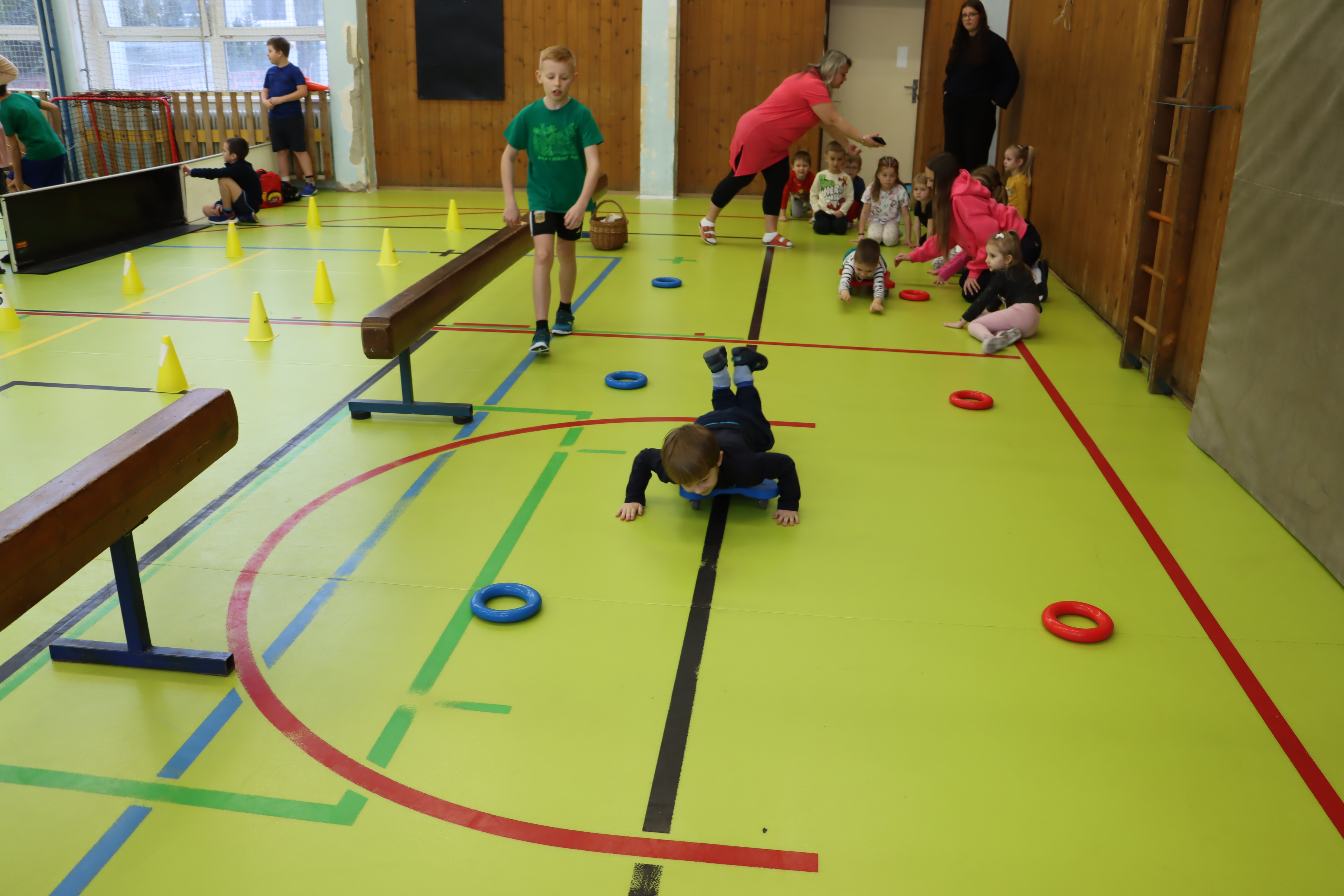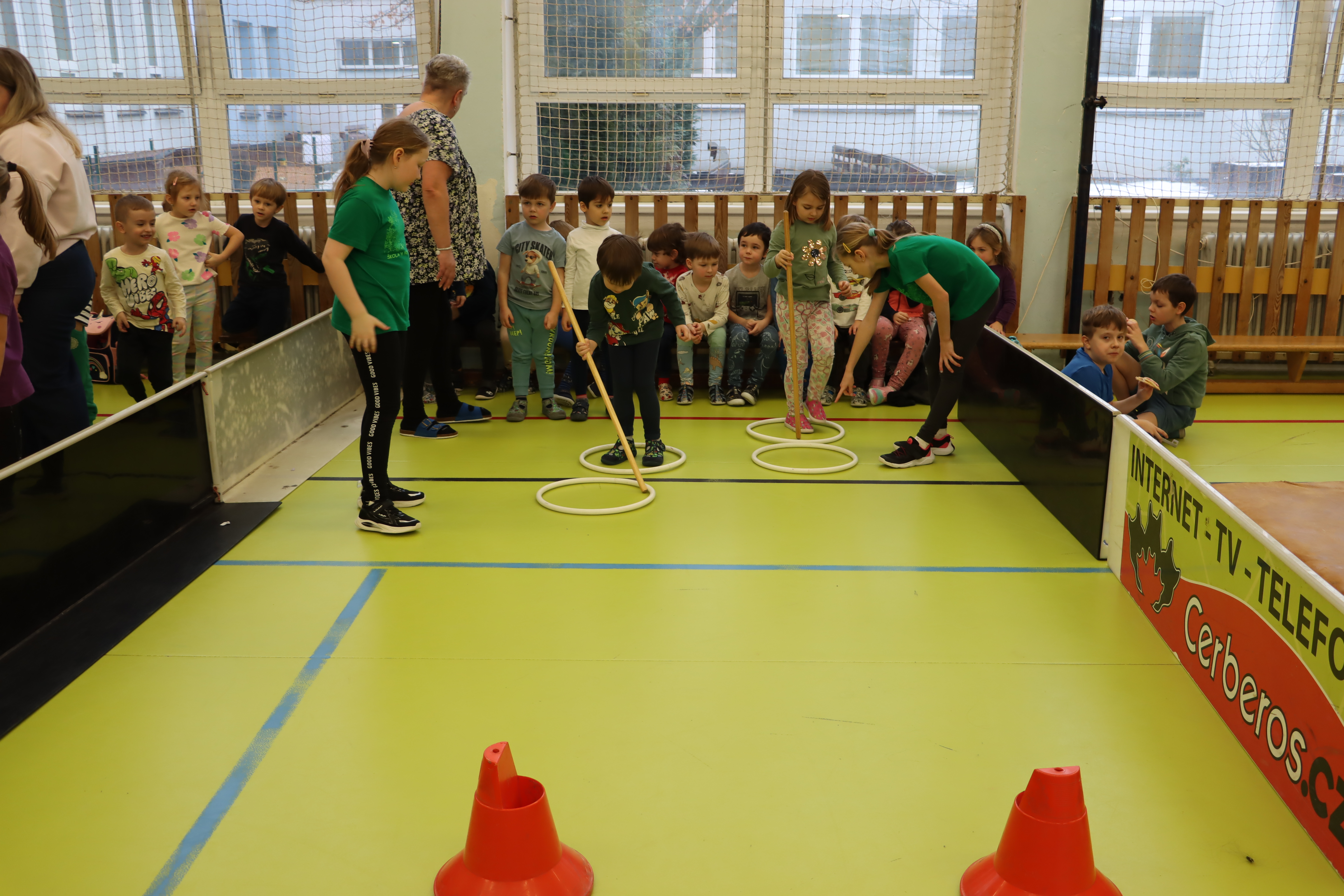 Ve čtvrtek 15.1.2026 navštívily děti tělocvičnu ZŠ, kde připravila paní učitelka Zdeňka Kulasová se svojí třídou pro děti z mateřských škol pohybový program s názvem Školkohraní. Děti se vystřídaly na třinácti stanovištích, kde si mohly vyzkoušet různé pohybové dovednosti. Přestože ne všechno se jim podařilo stoprocentně, pohybové aktivity plnily s radostí a elánem. Sportu zdar!