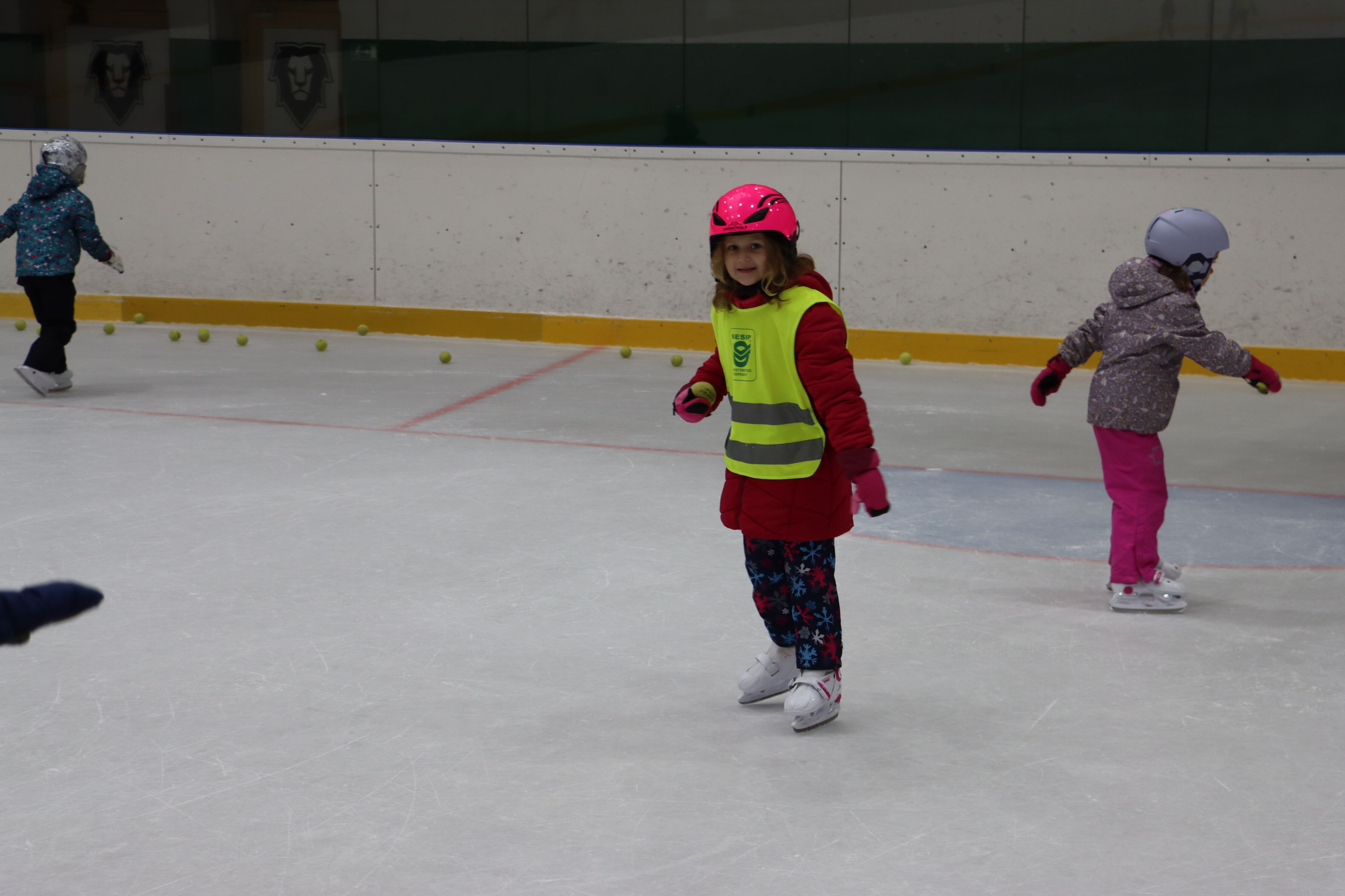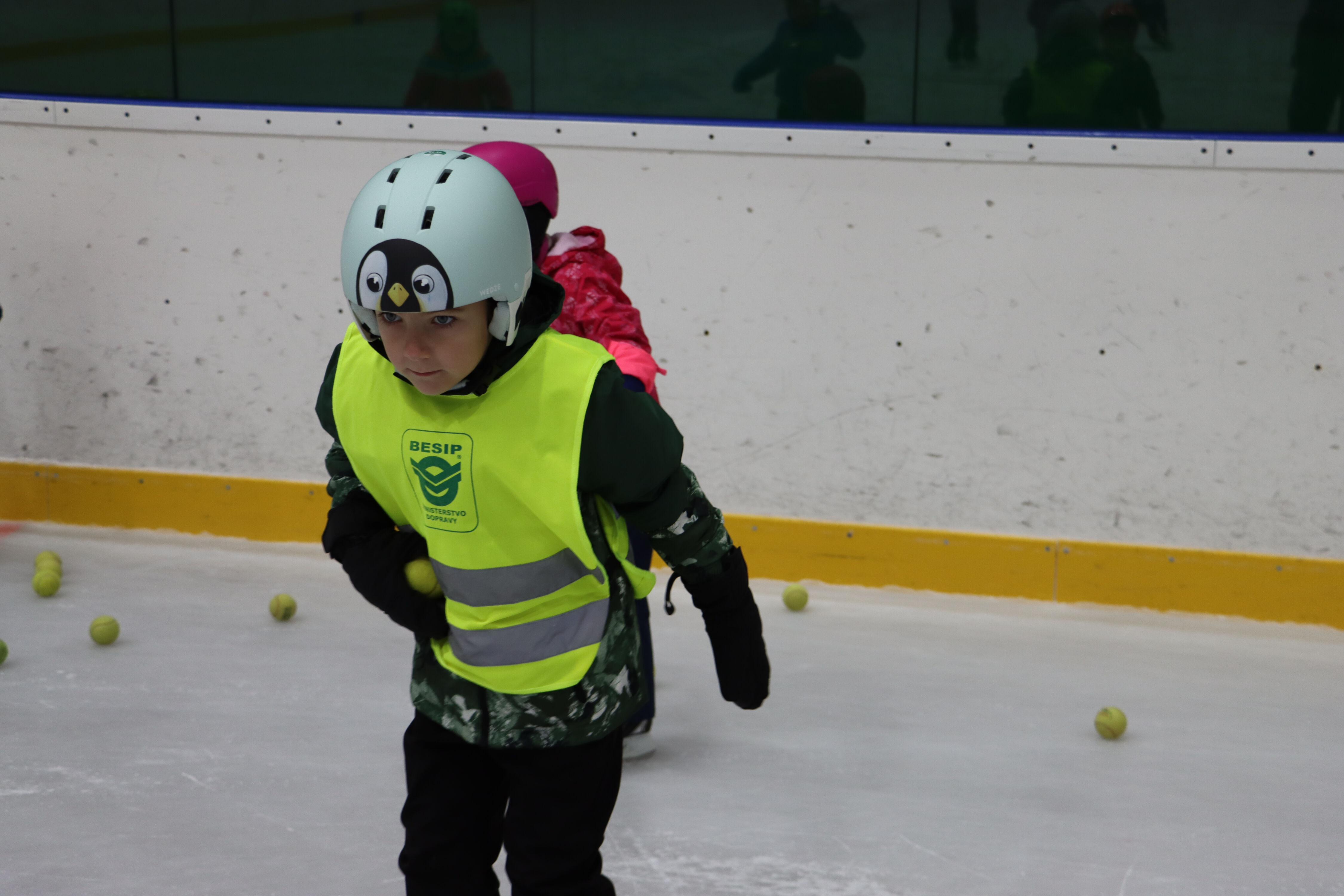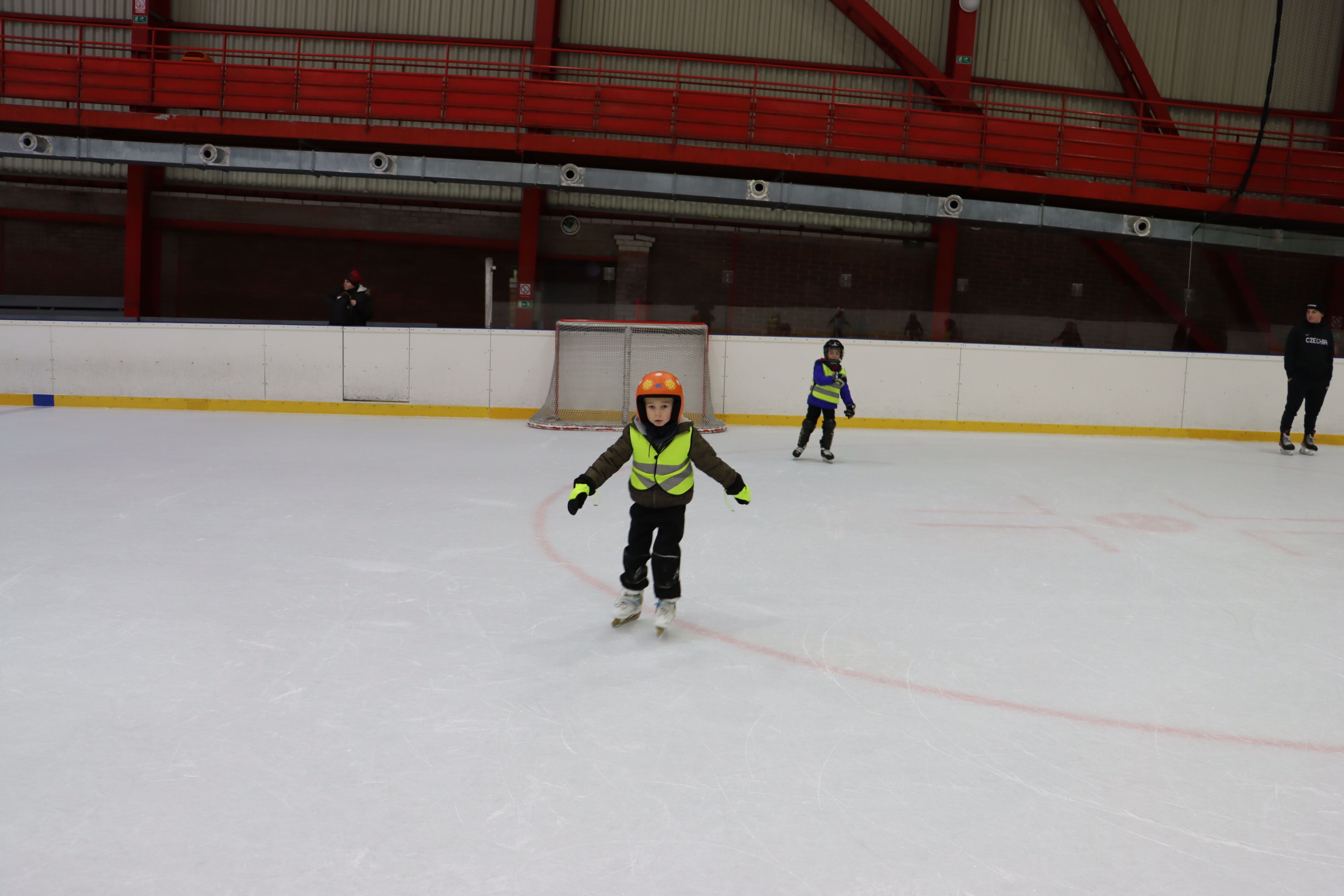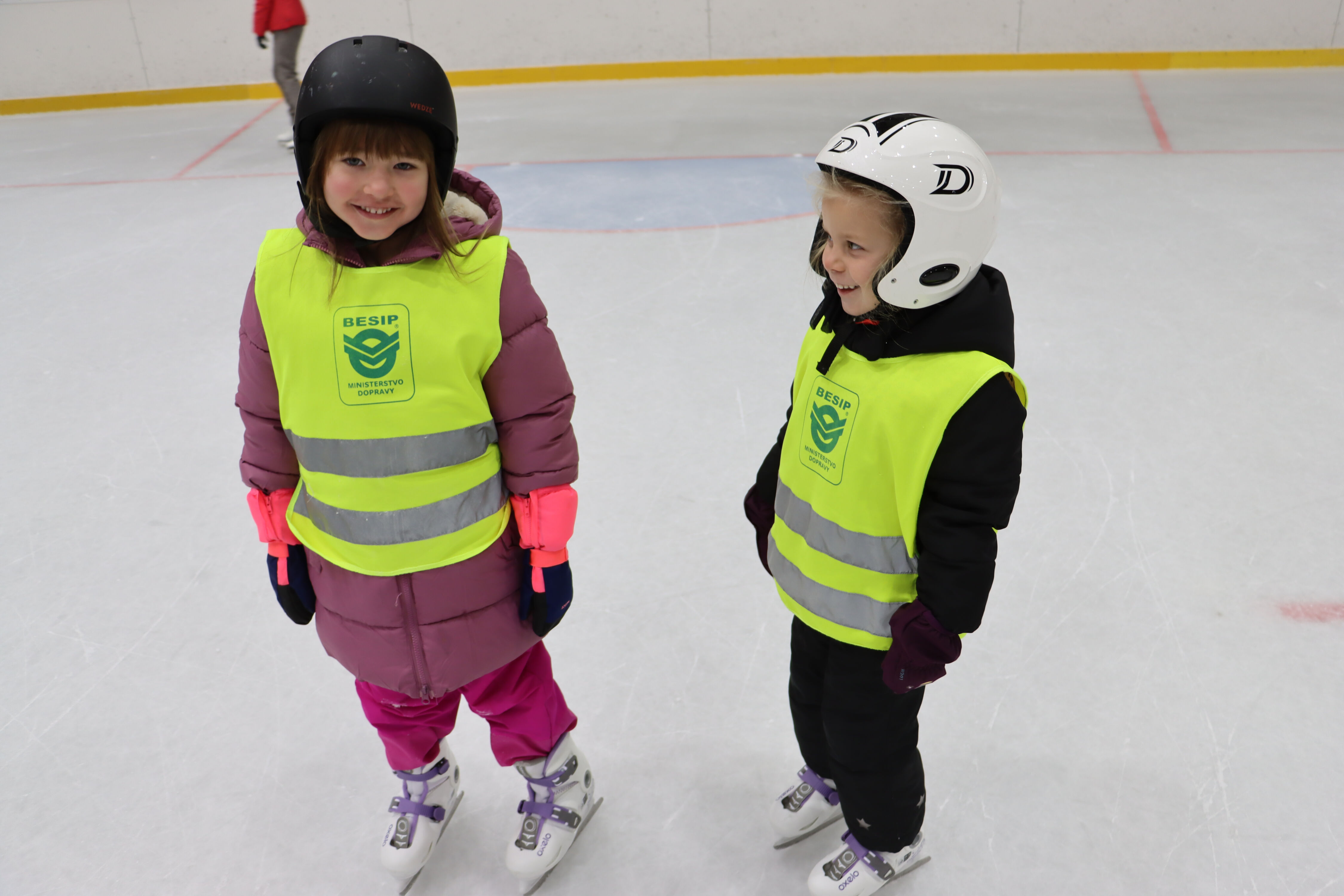 S předškoláky chodíme bruslit na zimní stadion pod vedením hokejových trenérů BK Mladá Boleslav.
