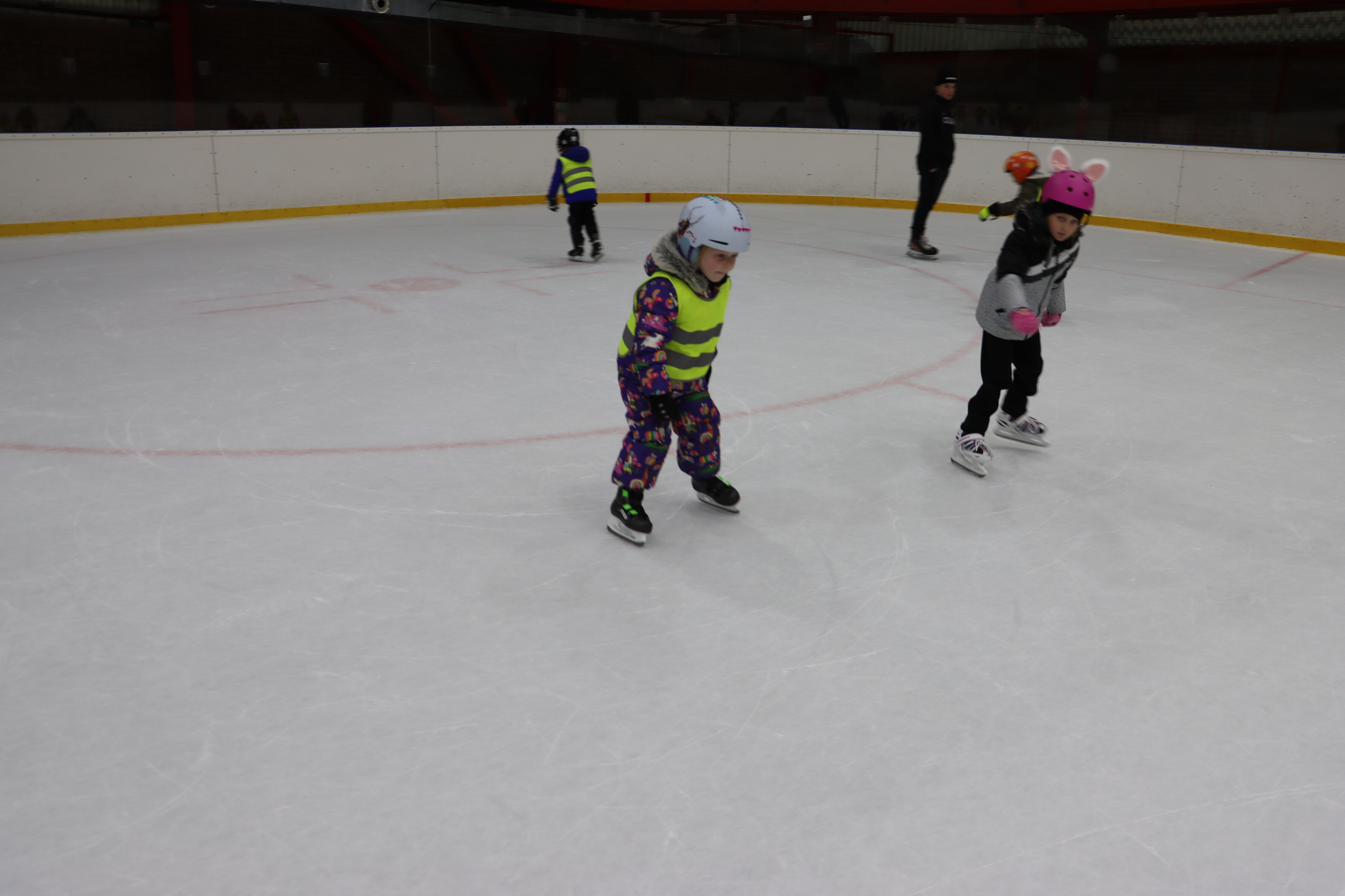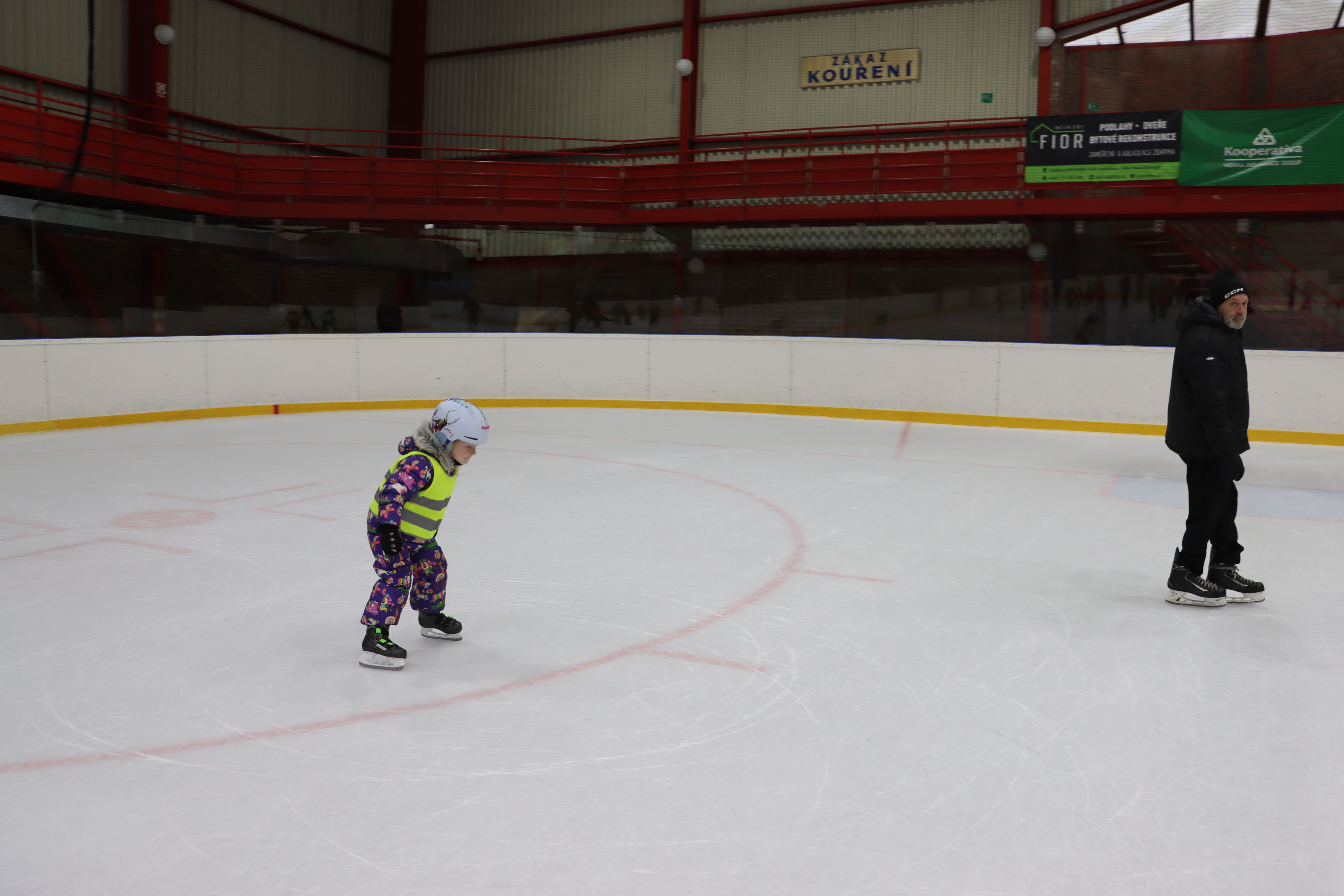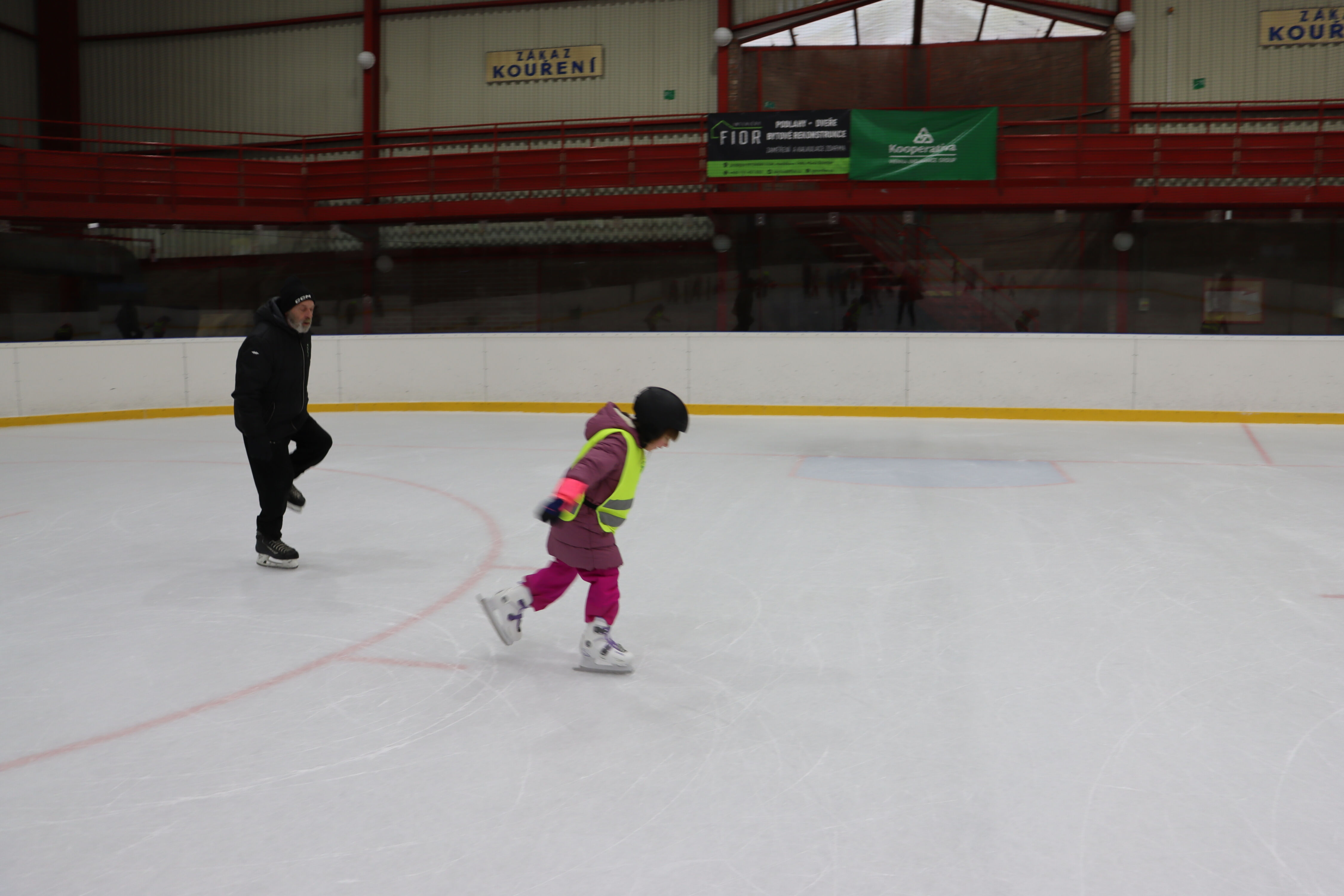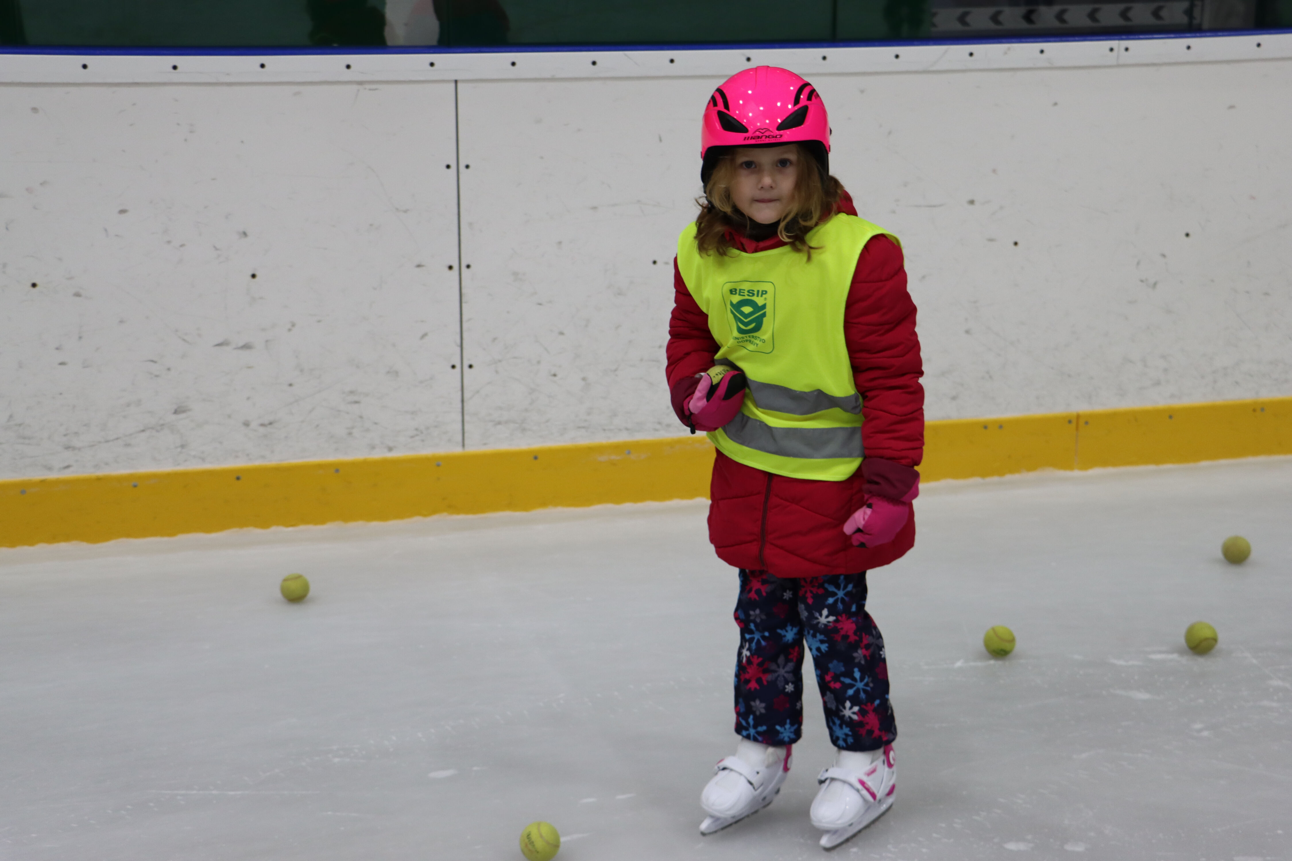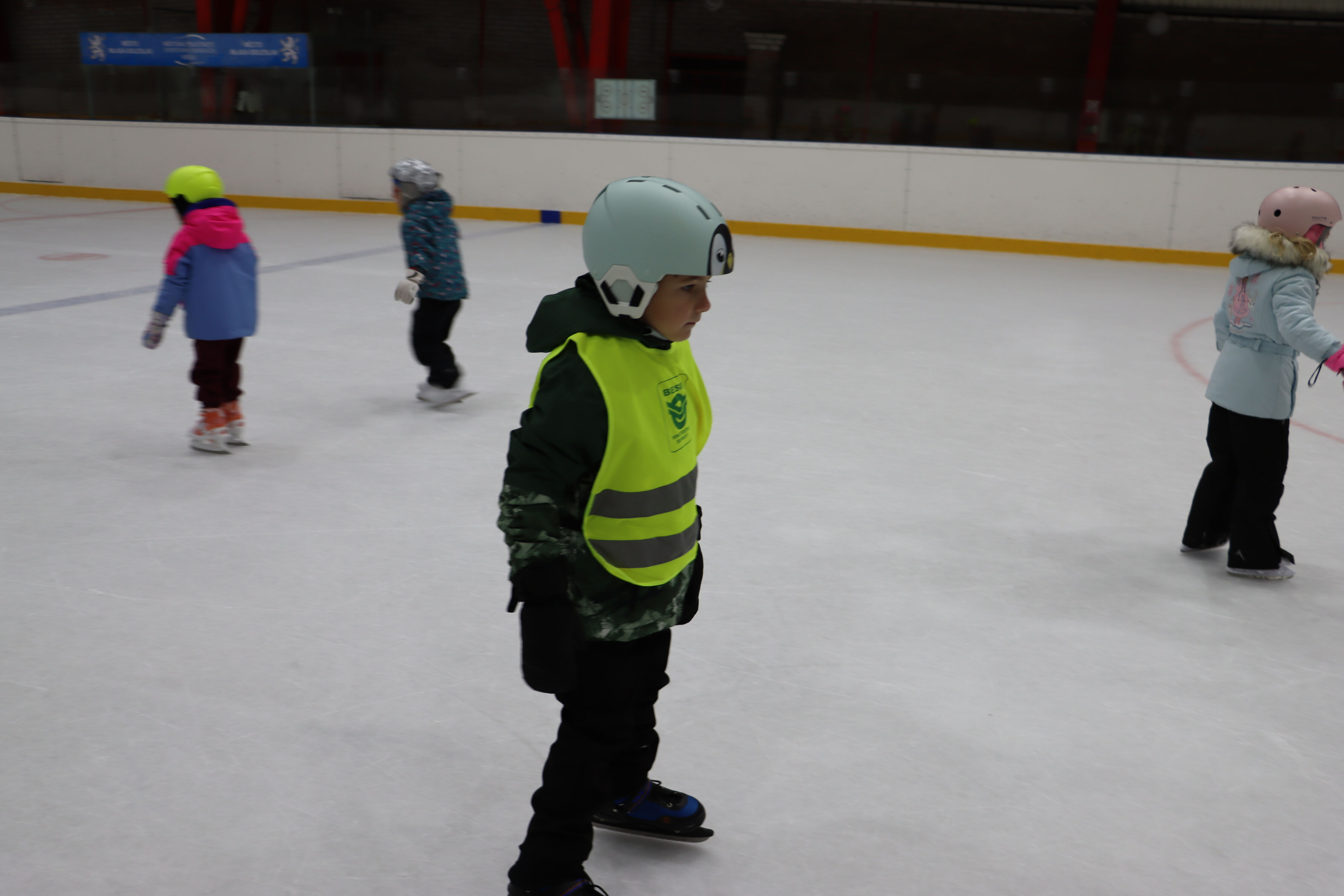 S předškoláky chodíme bruslit na zimní stadion pod vedením hokejových trenérů BK Mladá Boleslav.