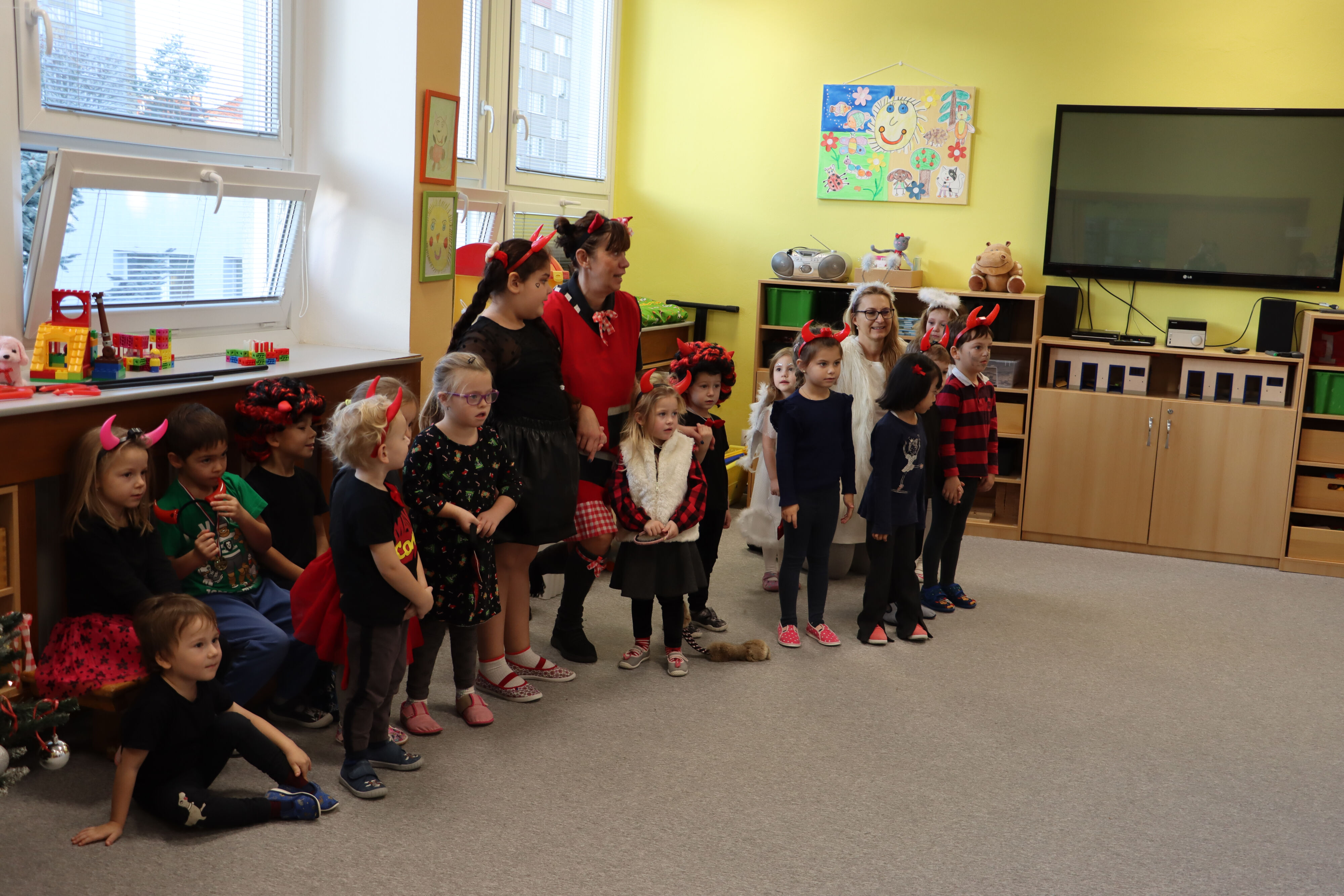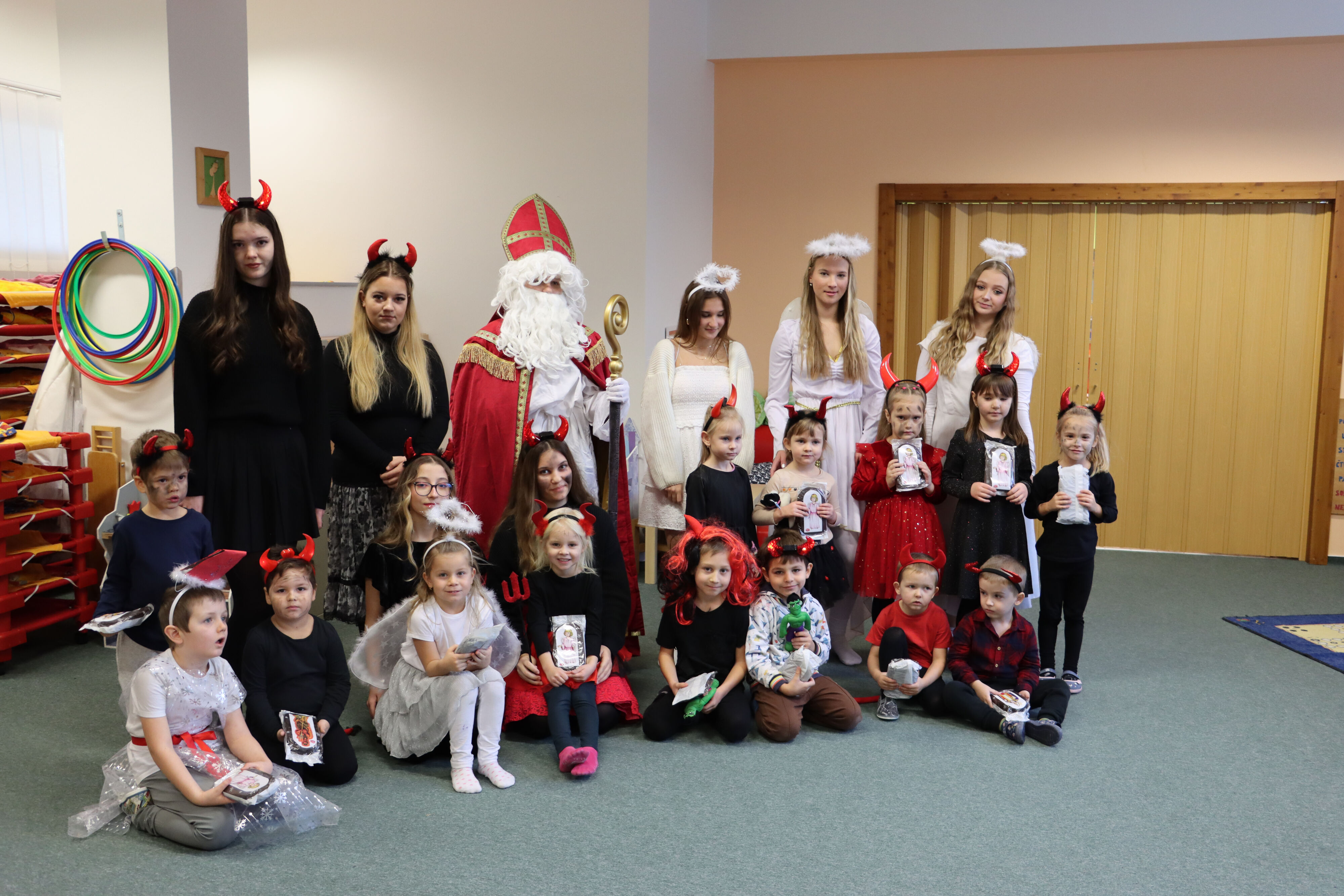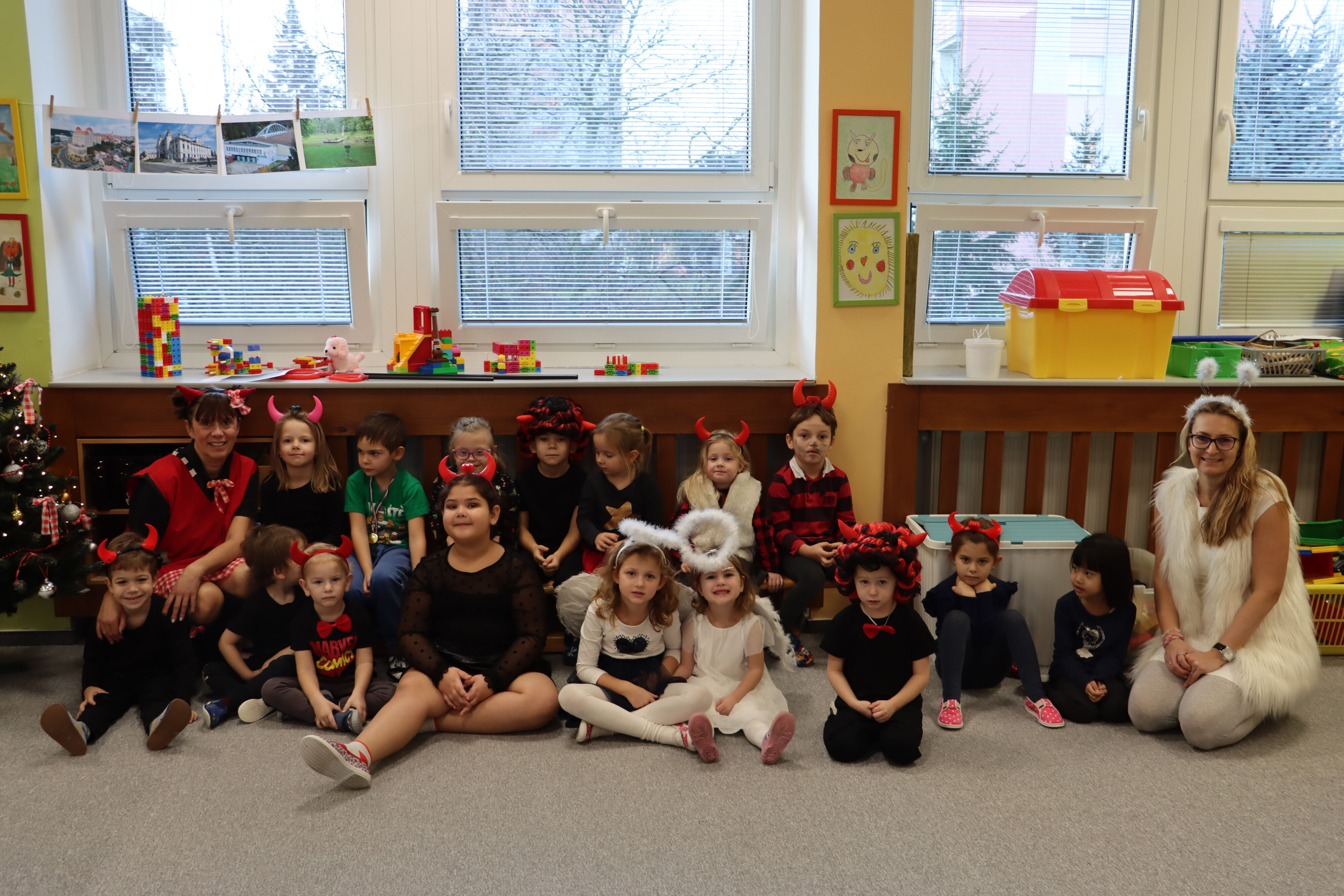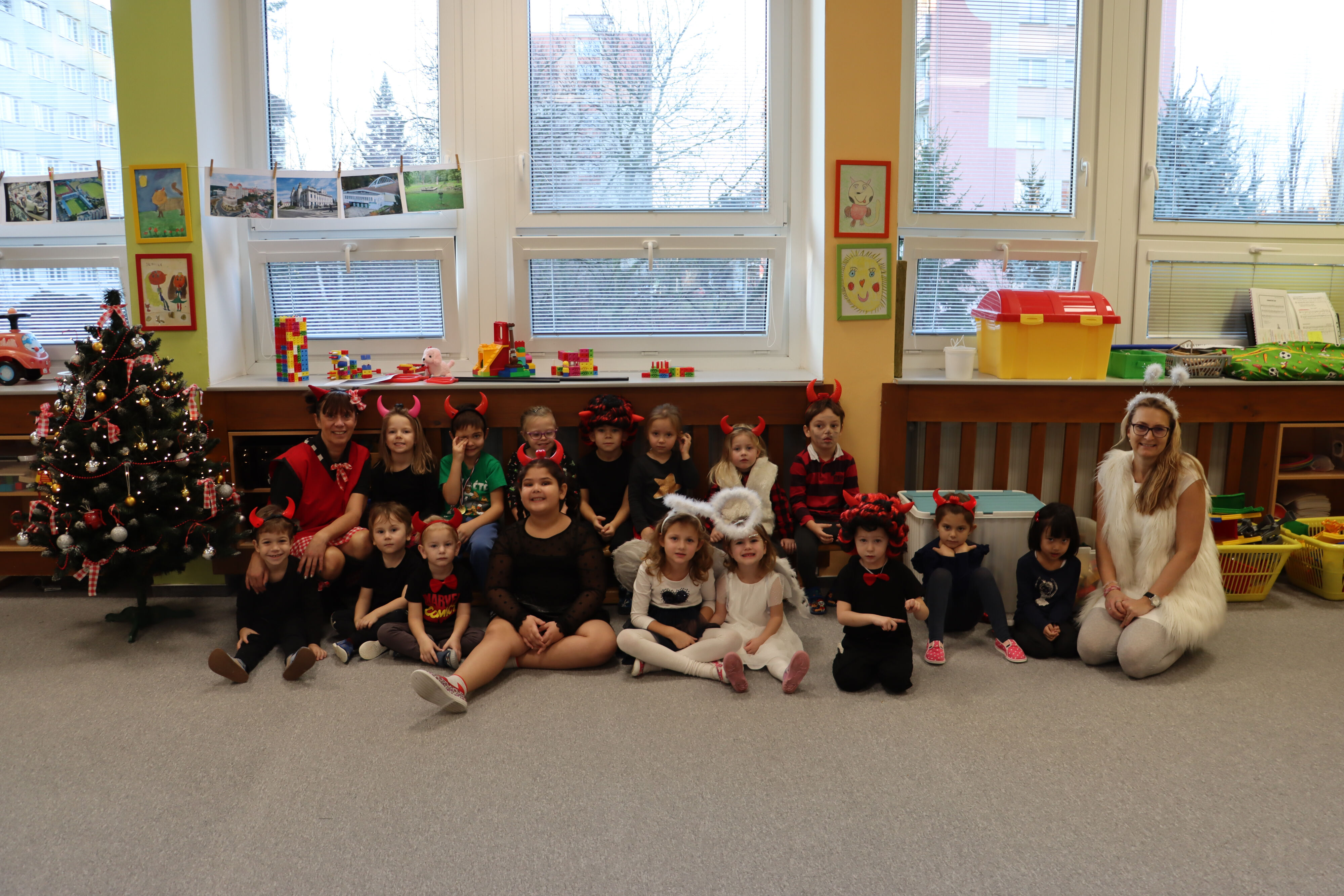 Ve středu naši školku navštívil Mikuláš spolu s čerty a anděly. Někteří hříšníci se vyzpovídali ze svých hříchů a slíbili čertům polepšení, v každé třídě děti zarecitovaly básničku nebo zazpívaly písničku a Mikuláš je odměnil.