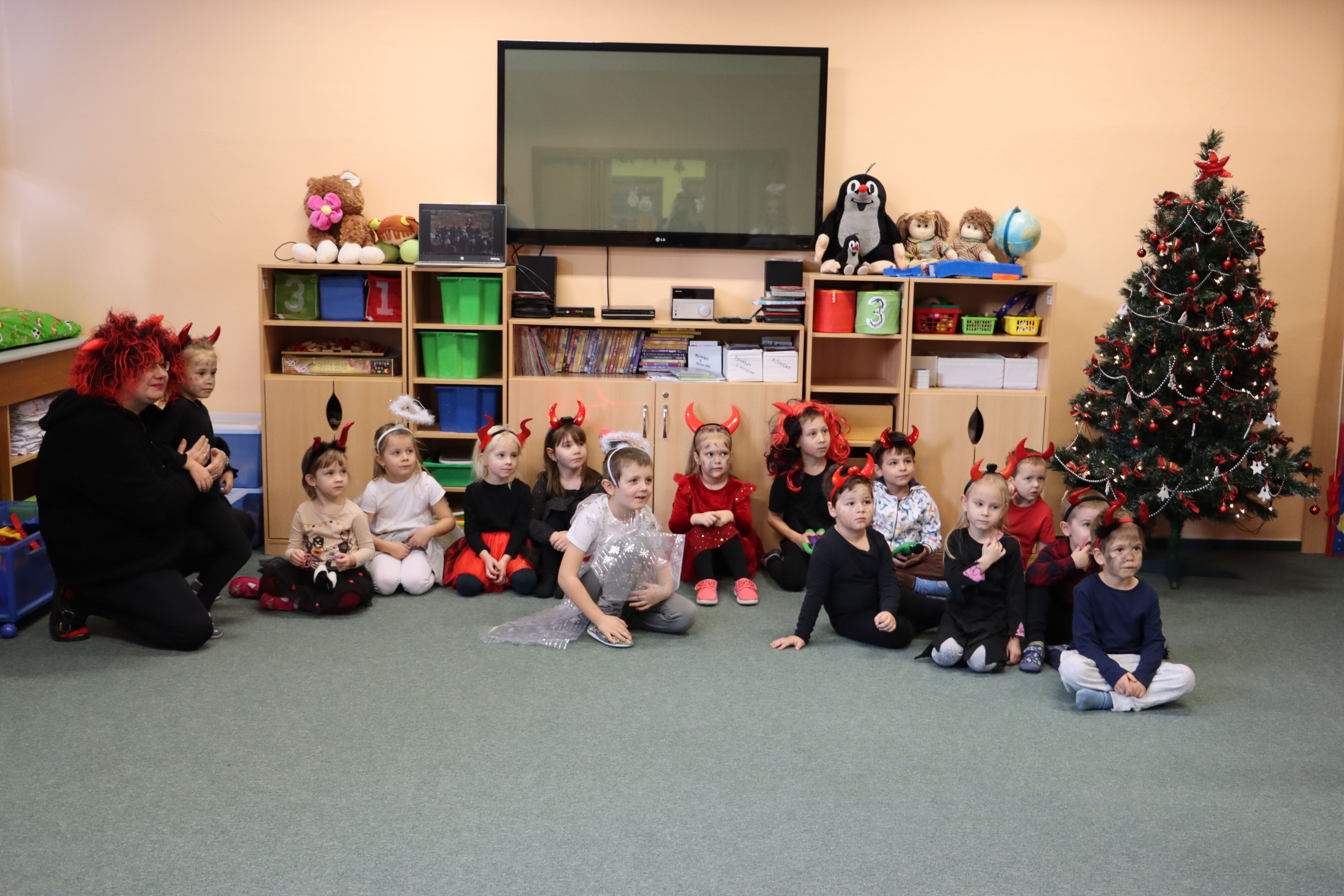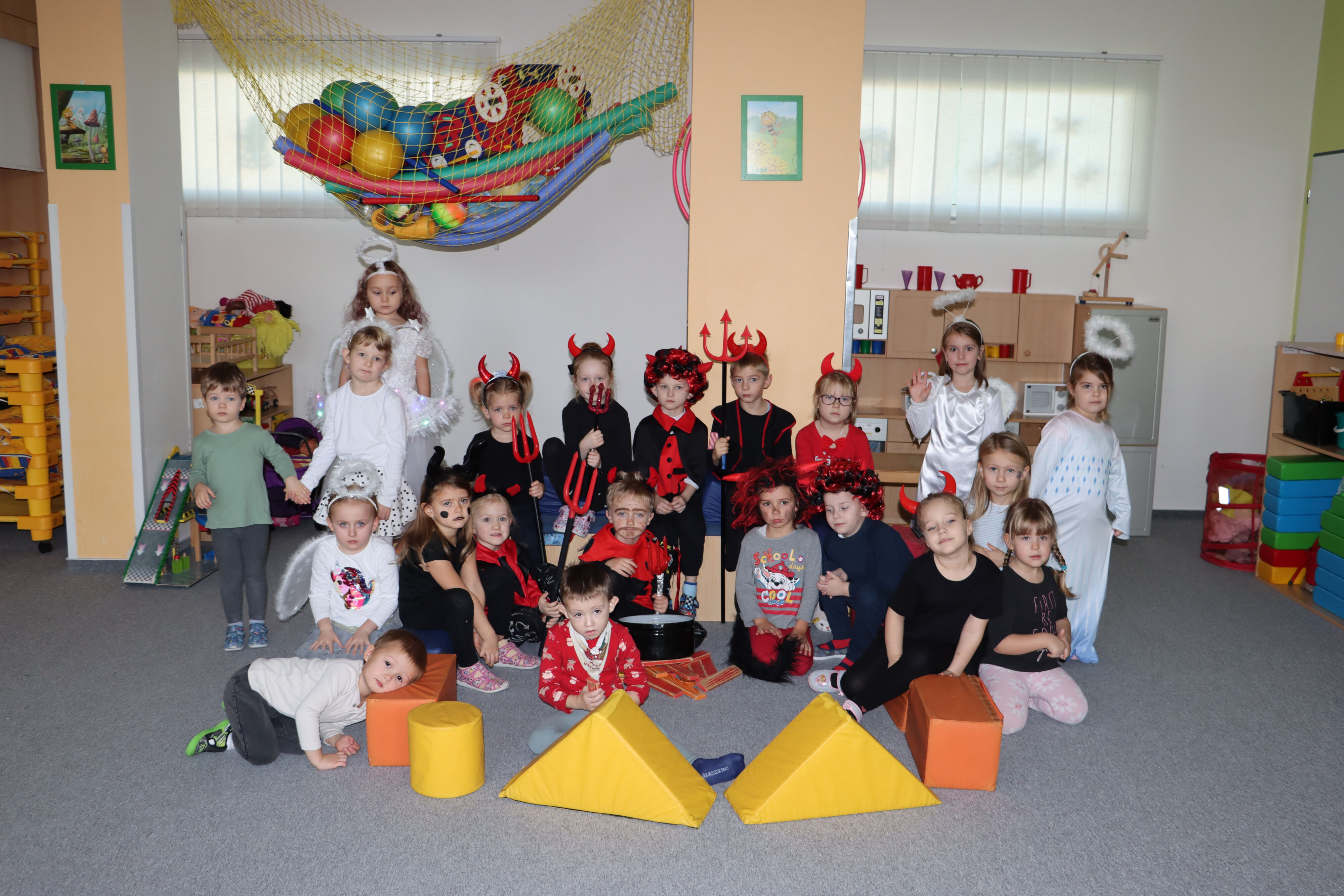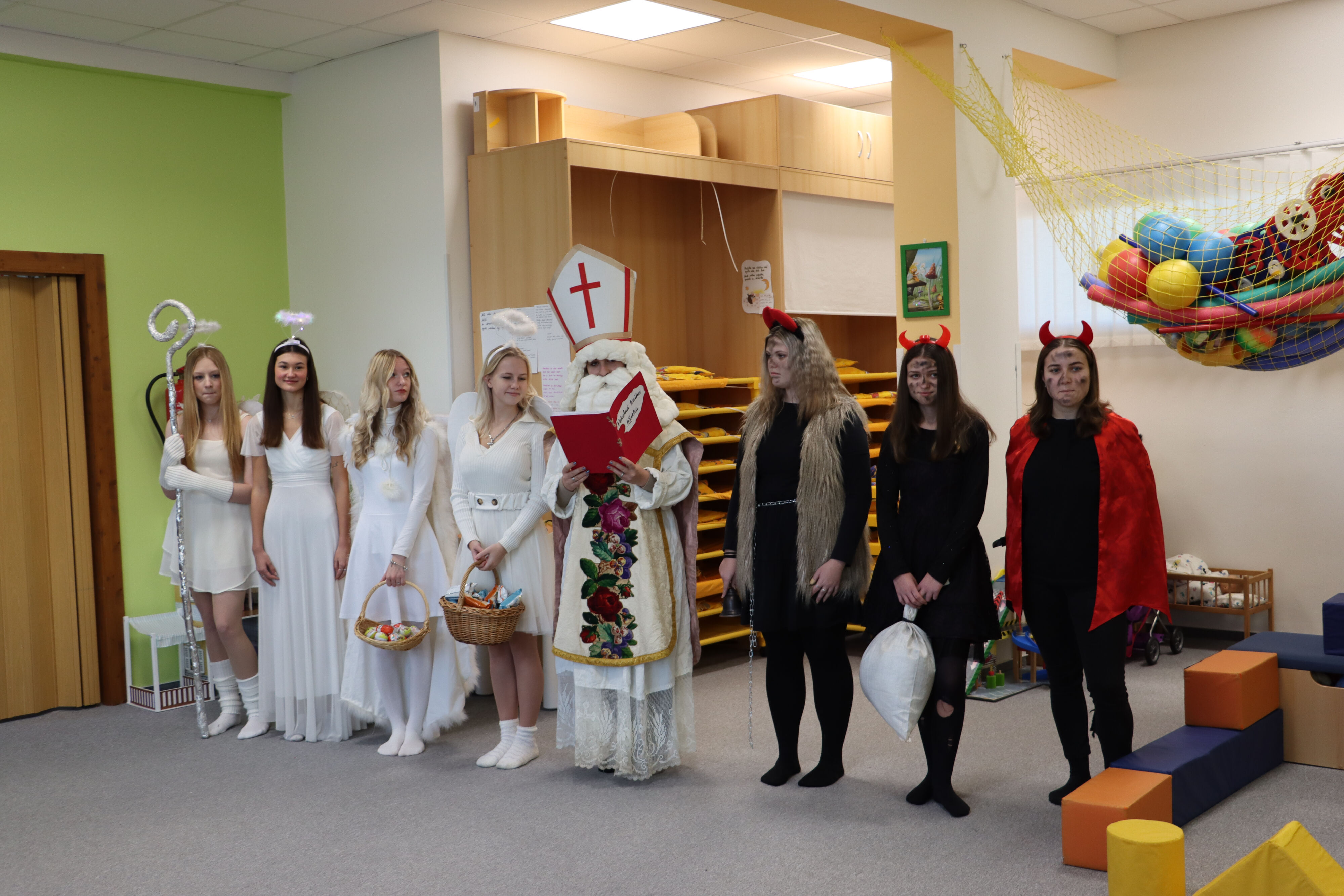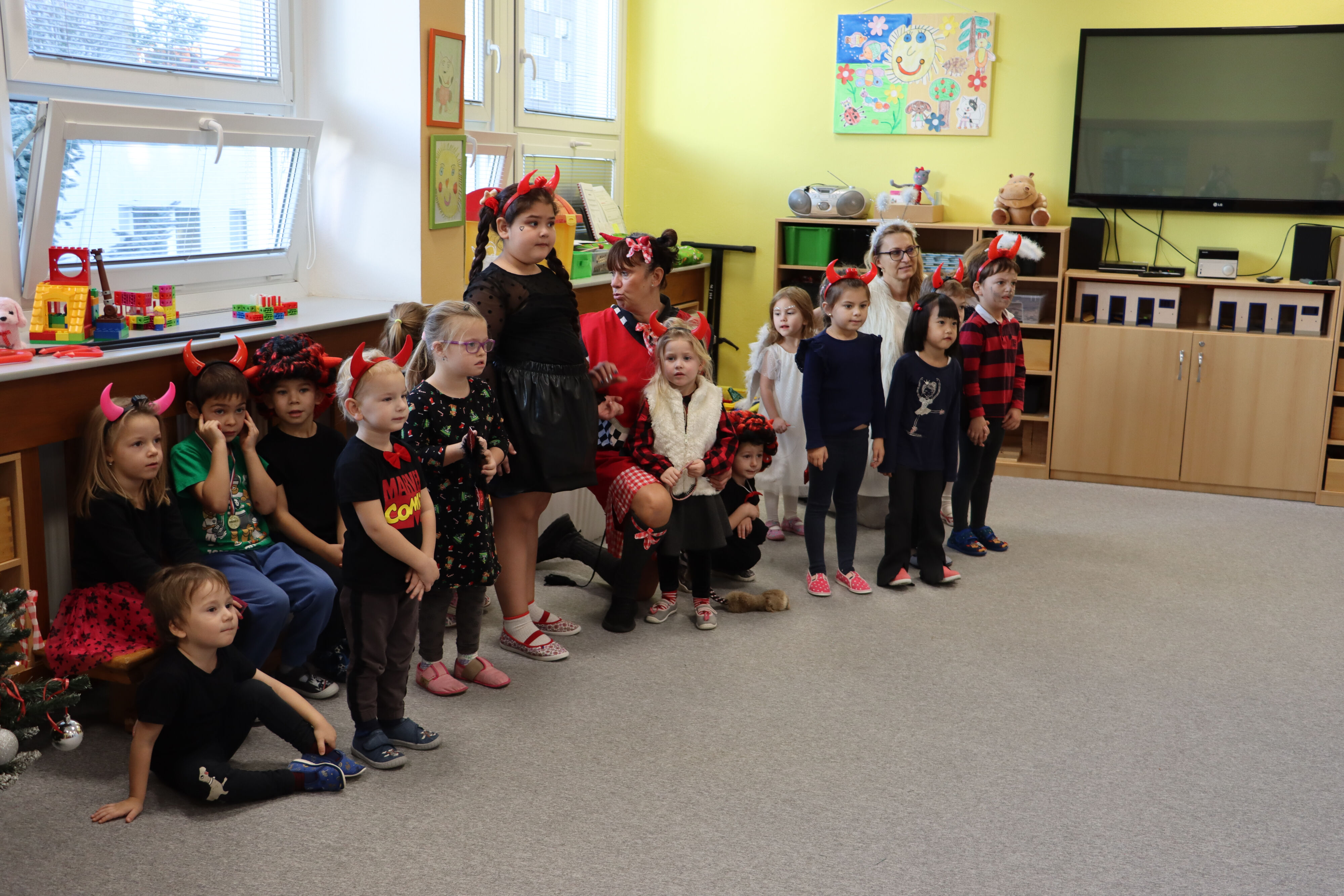 Ve středu naši školku navštívil Mikuláš spolu s čerty a anděly. Někteří hříšníci se vyzpovídali ze svých hříchů a slíbili čertům polepšení, v každé třídě děti zarecitovaly básničku nebo zazpívaly písničku a Mikuláš je odměnil.