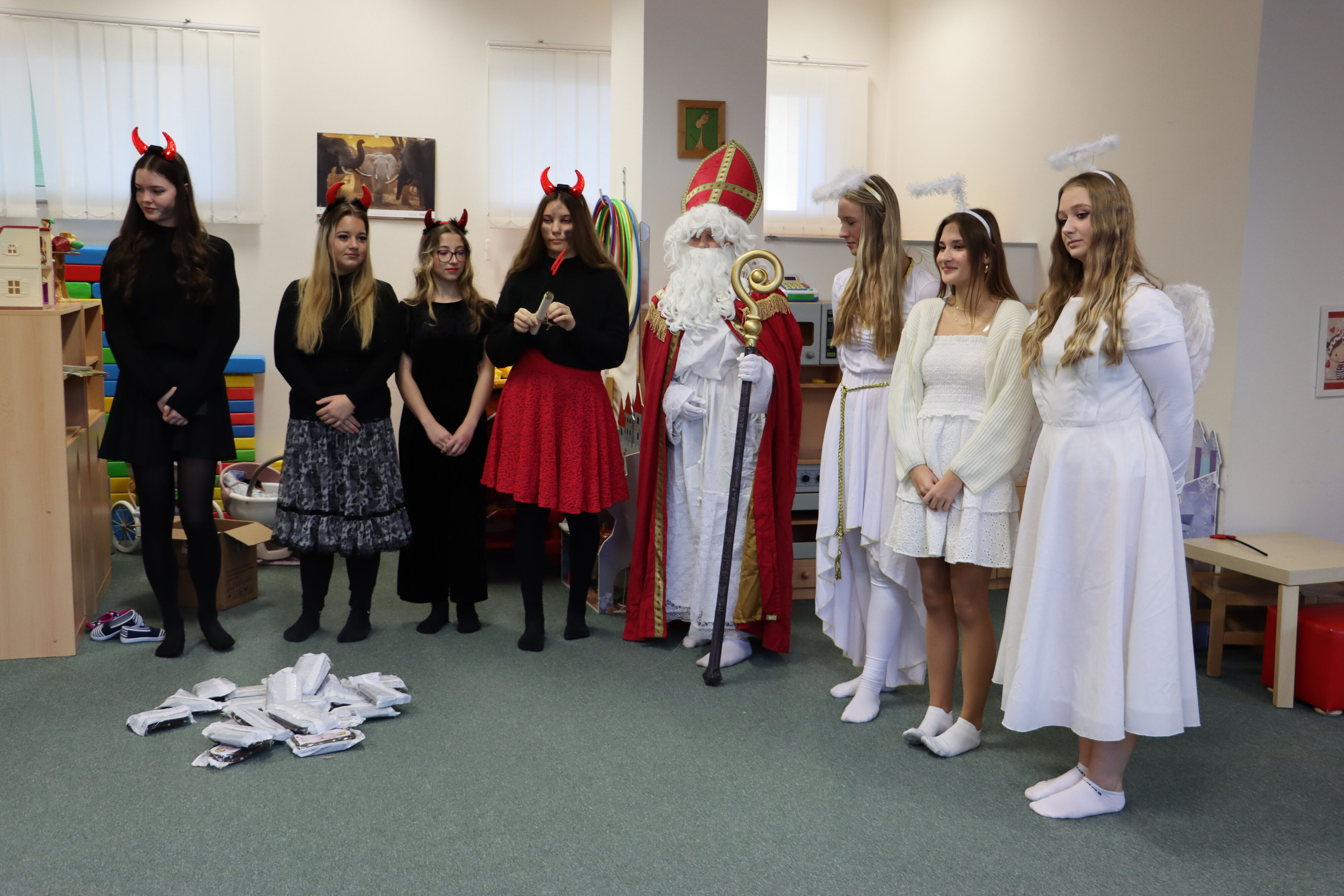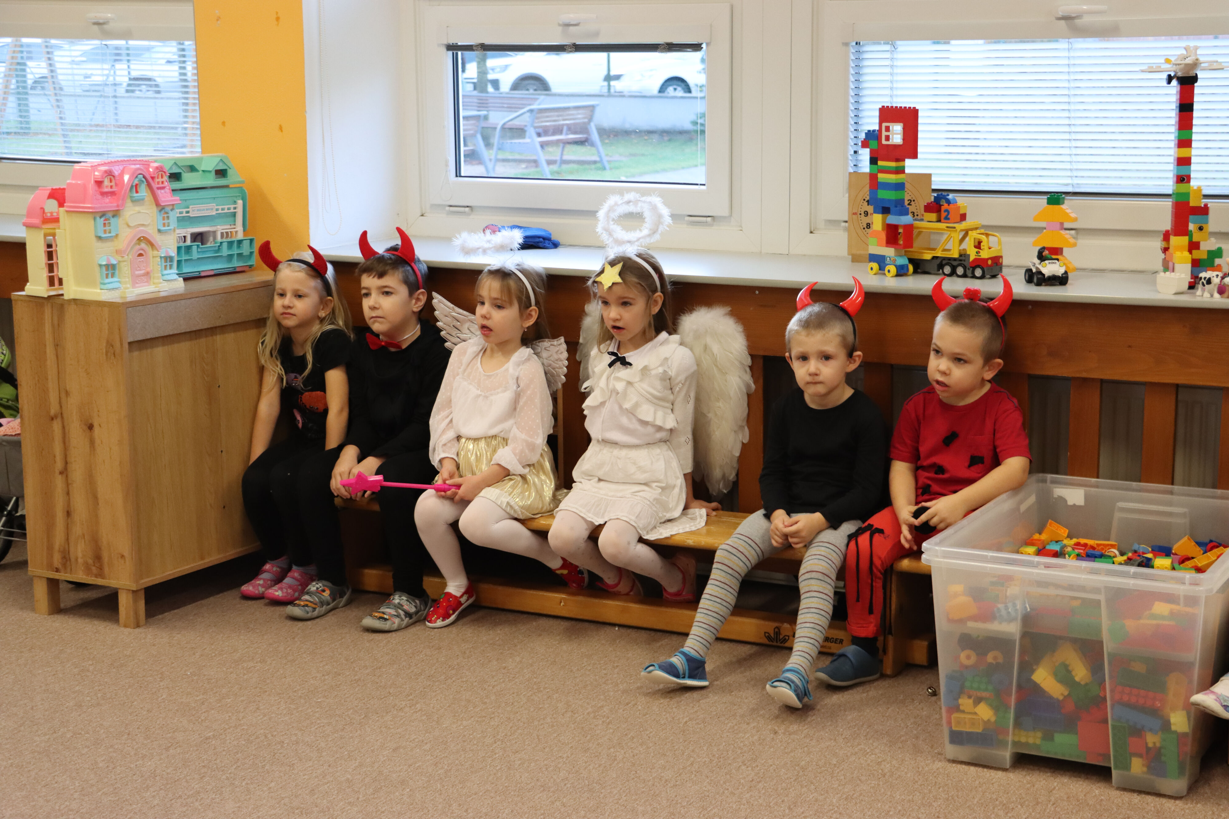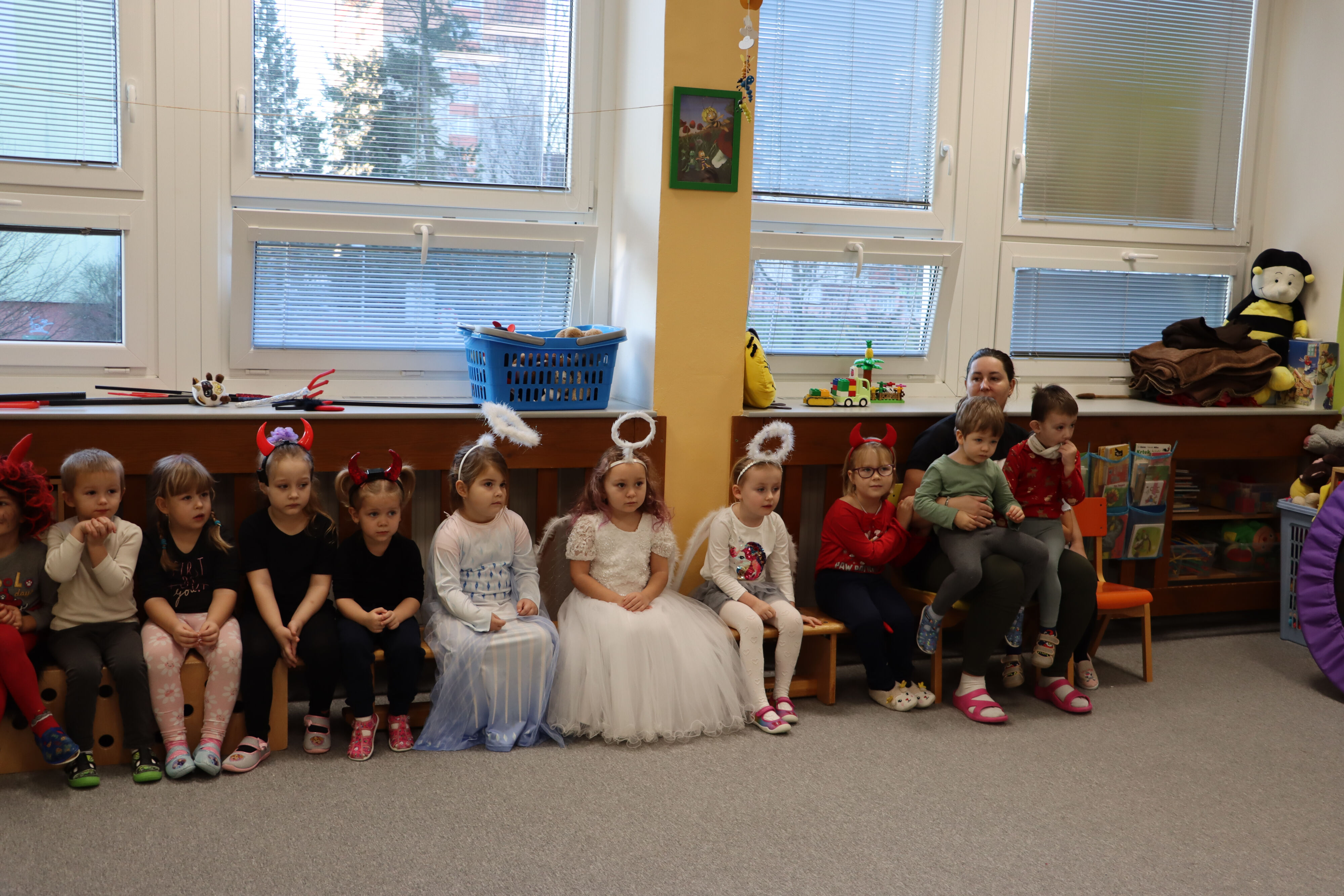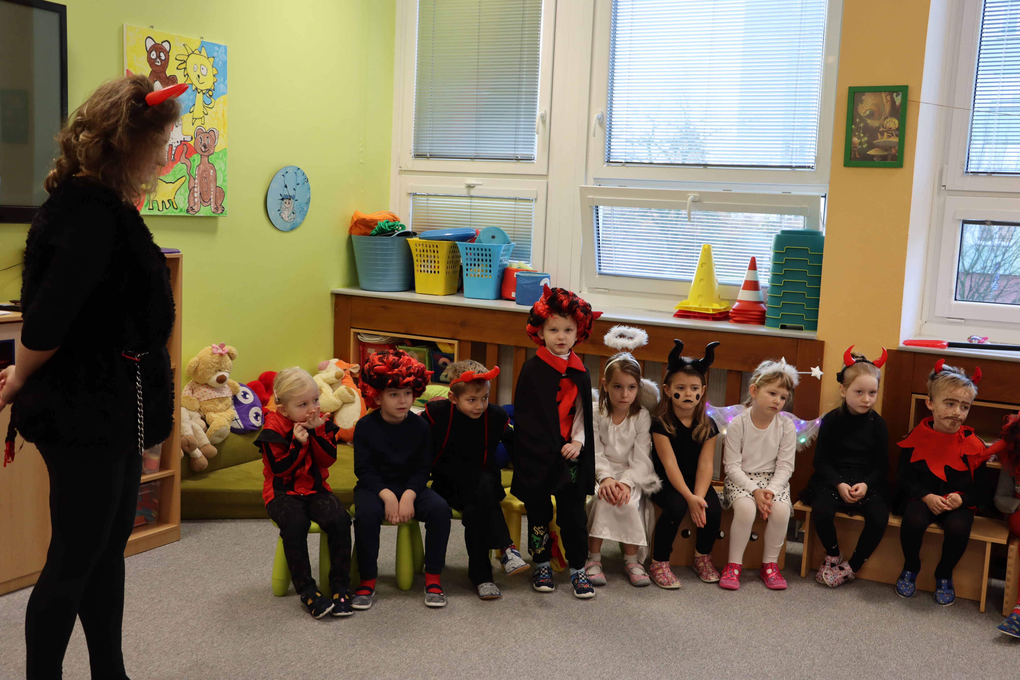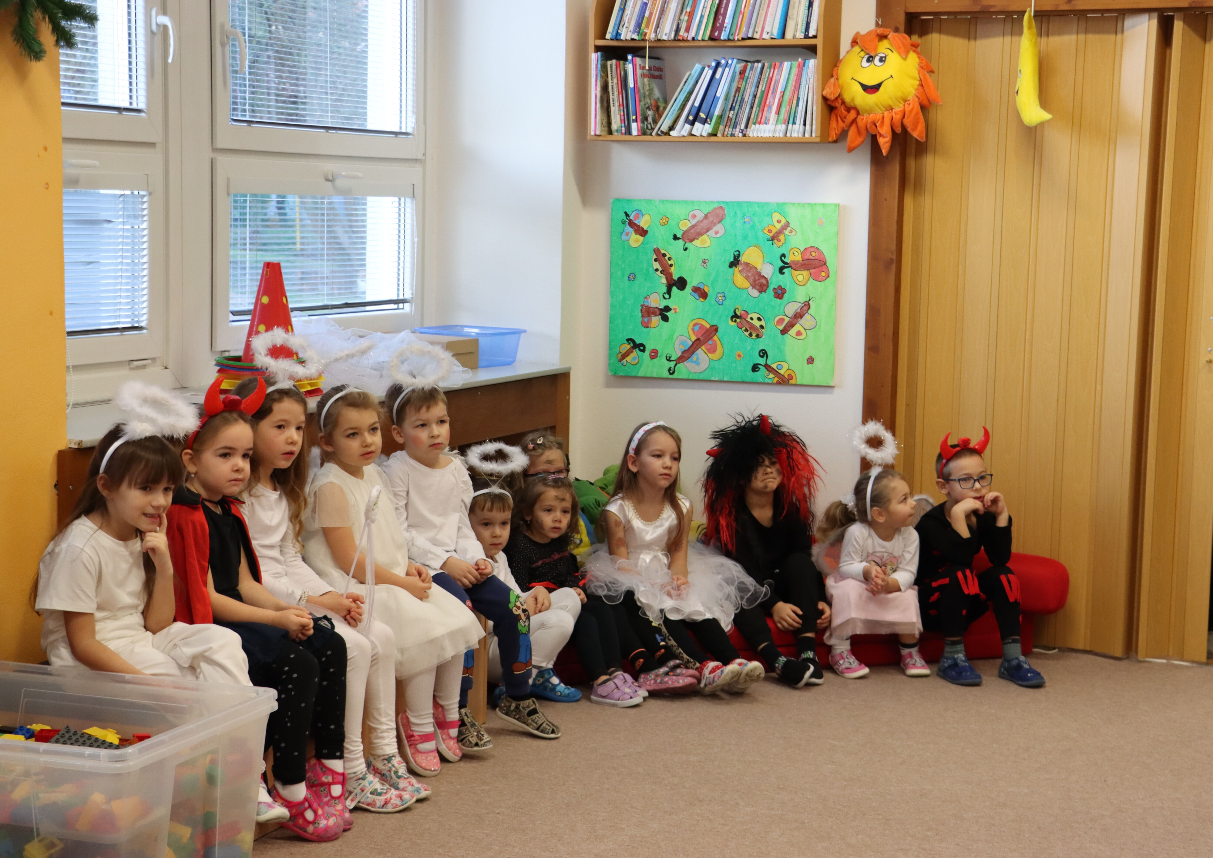 Ve středu naši školku navštívil Mikuláš spolu s čerty a anděly. Někteří hříšníci se vyzpovídali ze svých hříchů a slíbili čertům polepšení, v každé třídě děti zarecitovaly básničku nebo zazpívaly písničku a Mikuláš je odměnil.