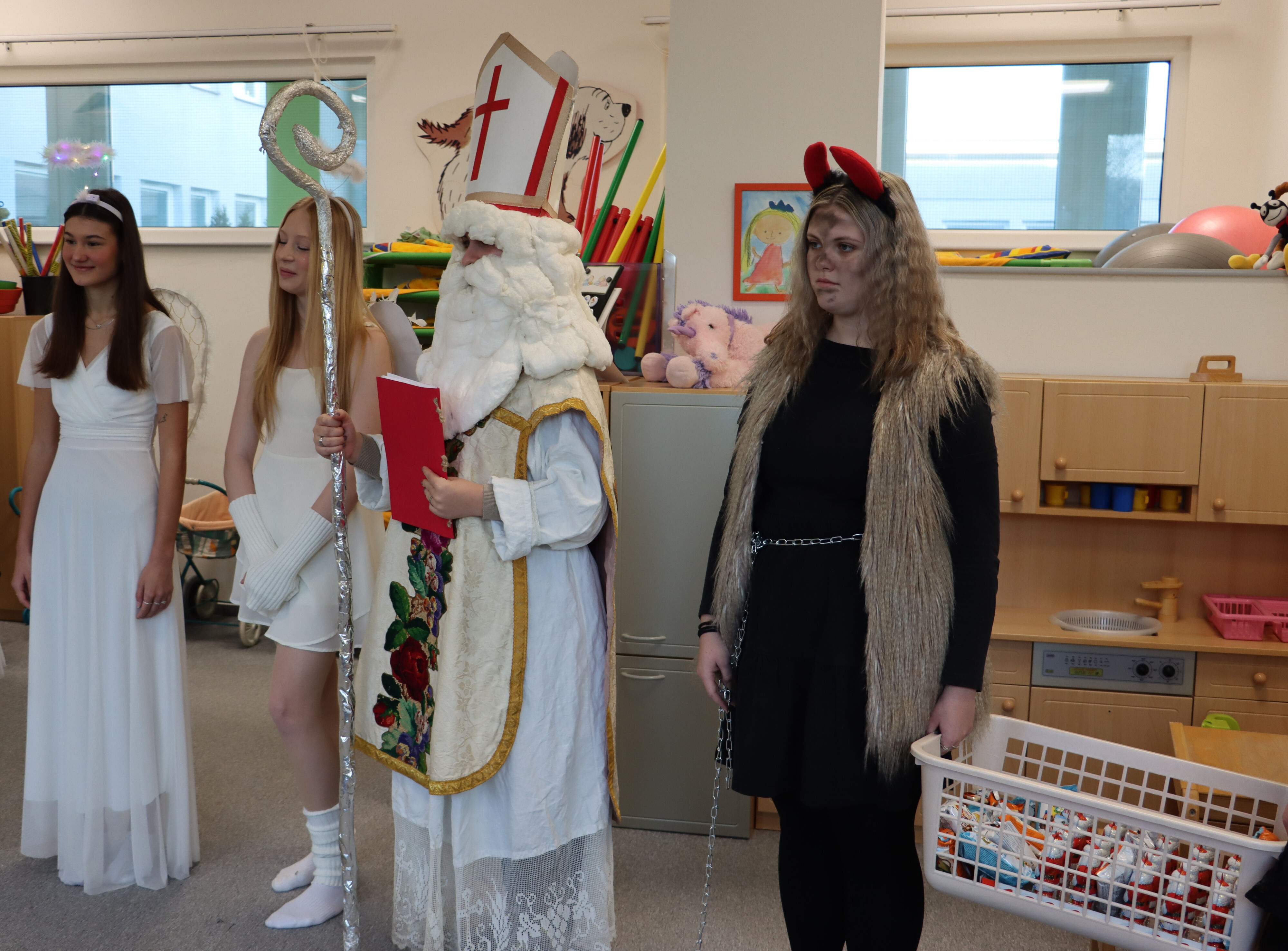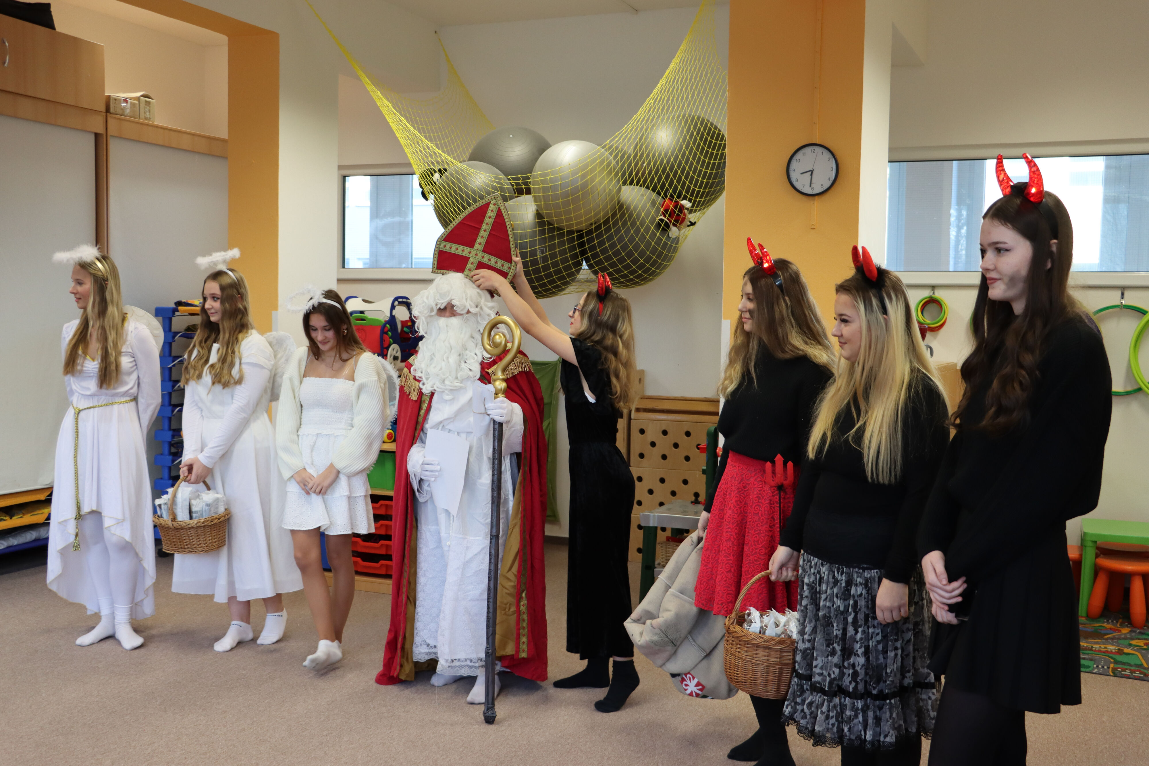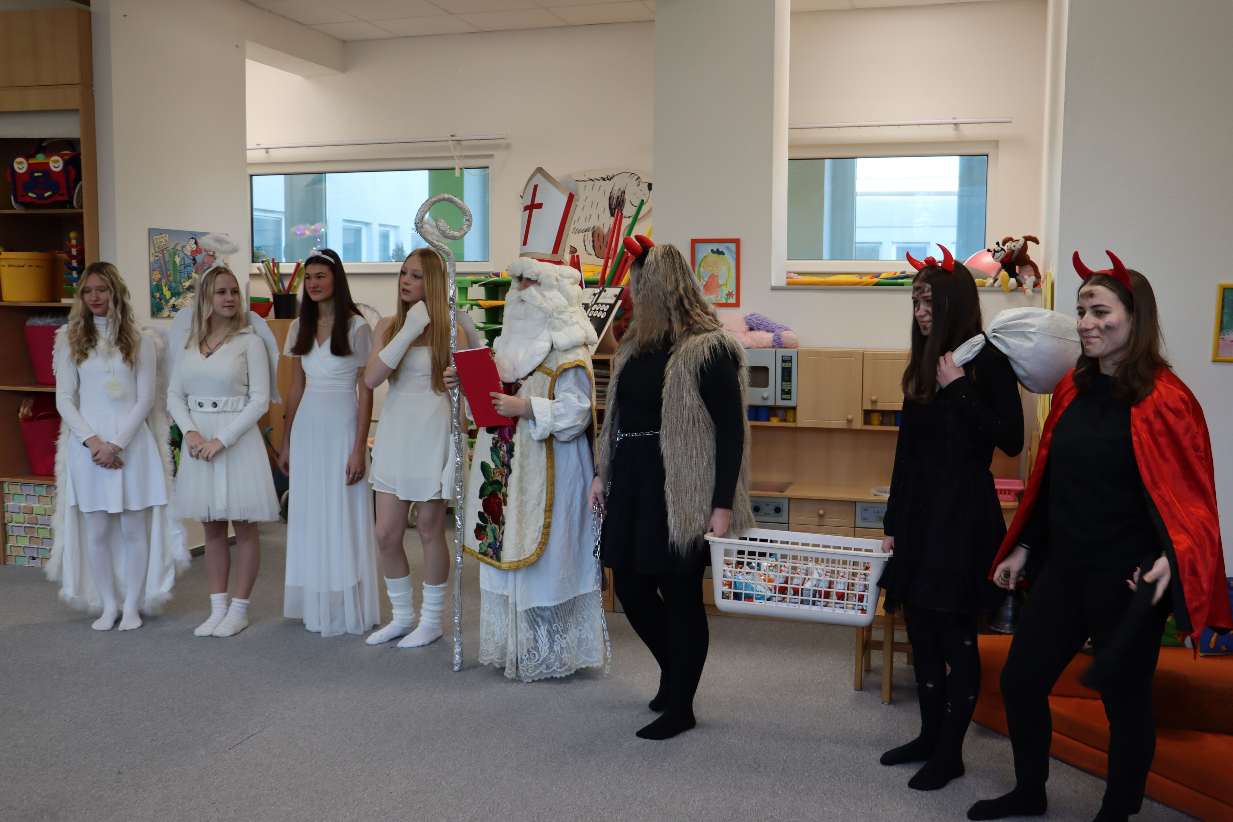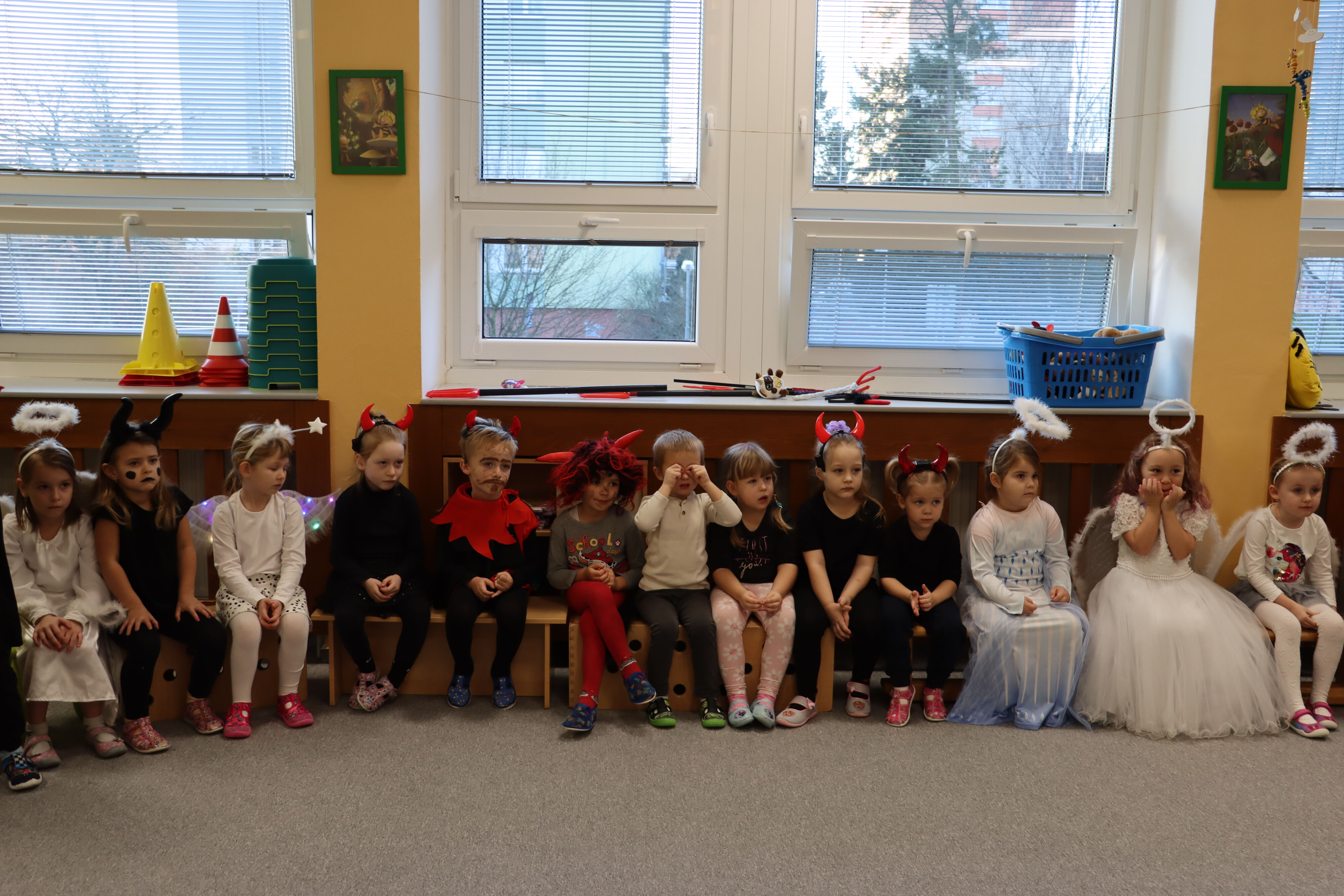 Ve středu naši školku navštívil Mikuláš spolu s čerty a anděly. Někteří hříšníci se vyzpovídali ze svých hříchů a slíbili čertům polepšení, v každé třídě děti zarecitovaly básničku nebo zazpívaly písničku a Mikuláš je odměnil.