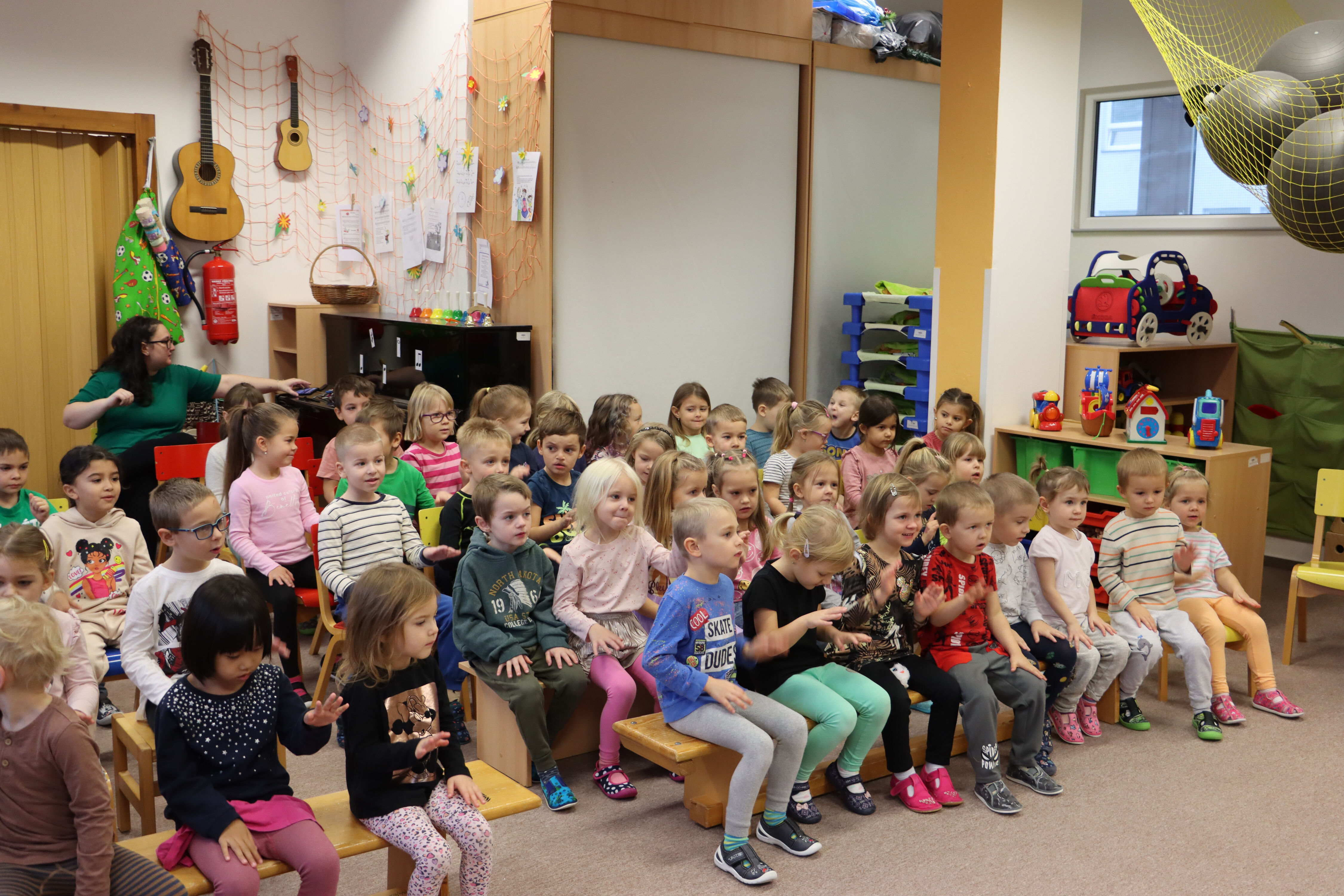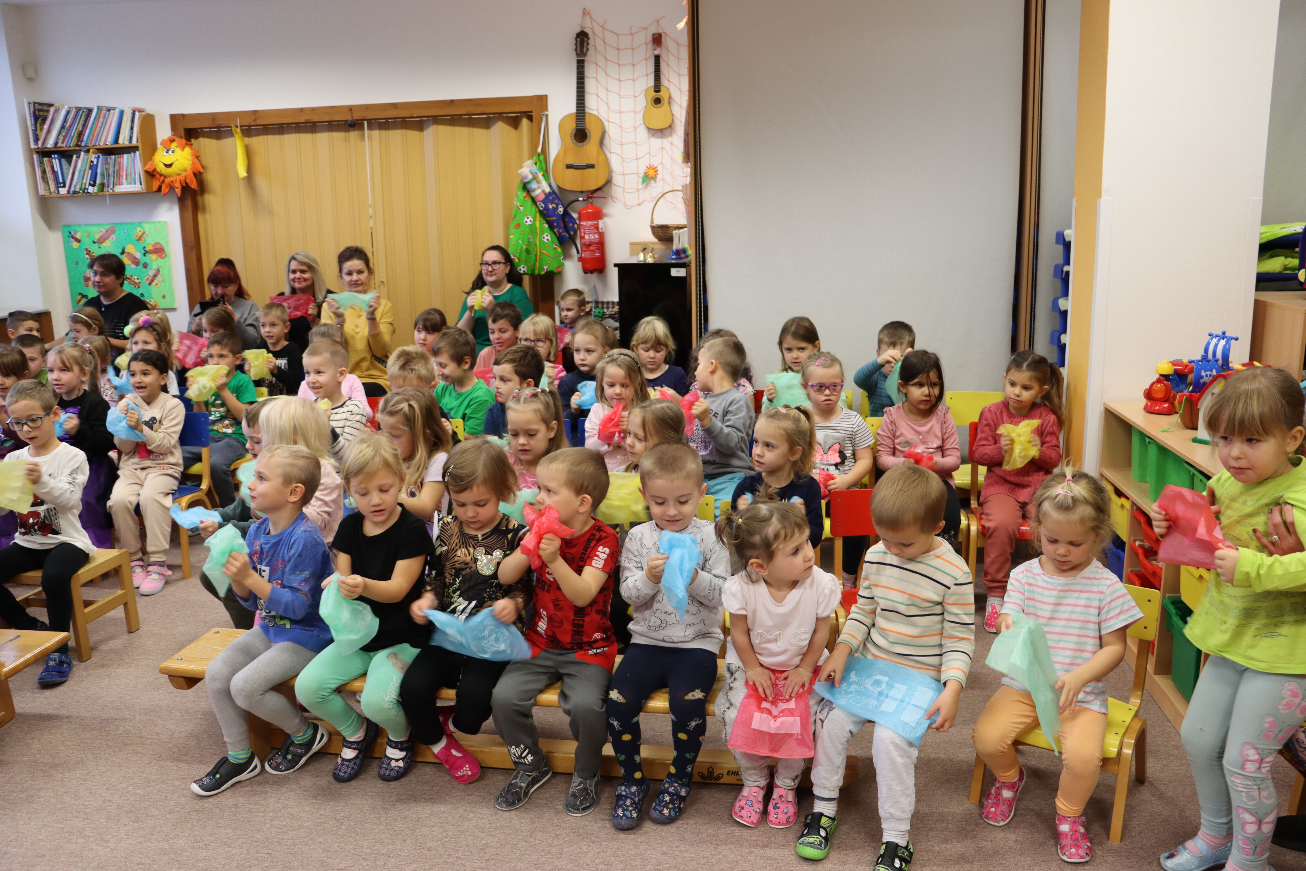 11.11. 2024 nás ve školce navštívila paní Čemusová s hudebním představením Muzikantský rok.