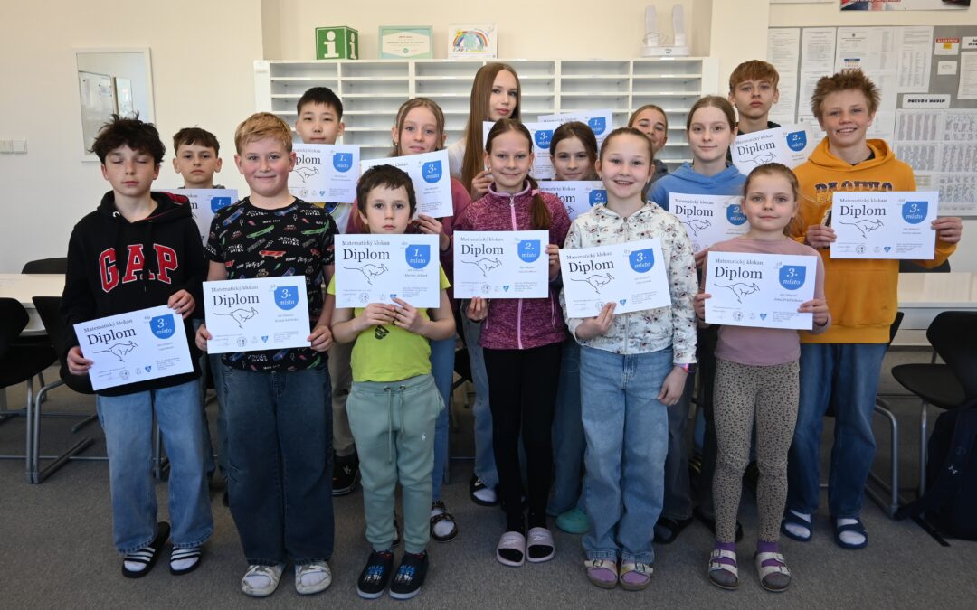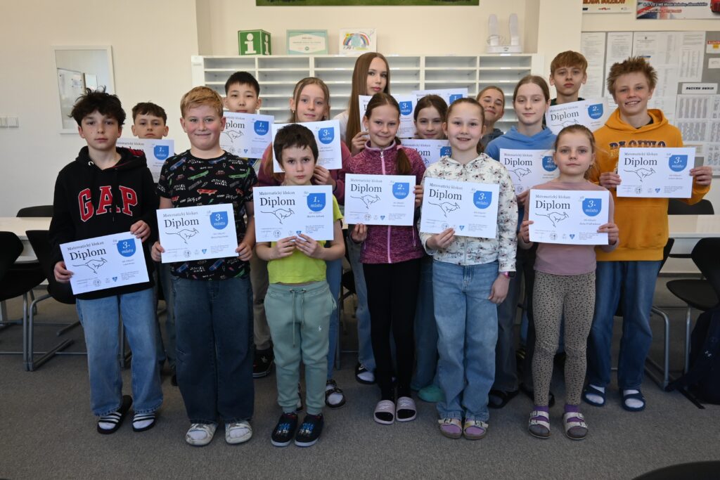 V pátek 20. 3. 2026 se konala soutěž Matematický klokan. 60 minut si všichni druháčci až deváťáci lámali hlavu nad logickými úlohami a zkoušeli své mozkové závity. Zapojilo se celkem 245 prvostupňových a 284 druhostupňových žáků. Řešili postupně úlohy za 3, 4 a 5 bodů a a snažili se po bodovém žebříčku vyšplhat co nejvýše. V kategorii nejmladší CVRČEK, se to podařilo Martinu Jelínkovi ze třídy 3.A. Ten se umístil současně na 3. místě mezi 1370 žáky boleslavského regionu. Kategorii čtvrtých a pátých ročníků KLOKÁNEK ovládl Mungkhbat Khangerel ze 4.B. Na II. stupni v mladší kategorii BENJAMÍN zvítězil Maksym Moishevych ze 6.C a mezi nejstaršími žáky nejlépe obstál s 80 body Jakub Urban ze třídy 8.A. Matematický klokan má svým obsahem i typem úloh podporovat logické myšlení a v konečném důsledku zájem o matematiku. Doufáme, že se nám to u někoho z více než 500 žáků podařilo.