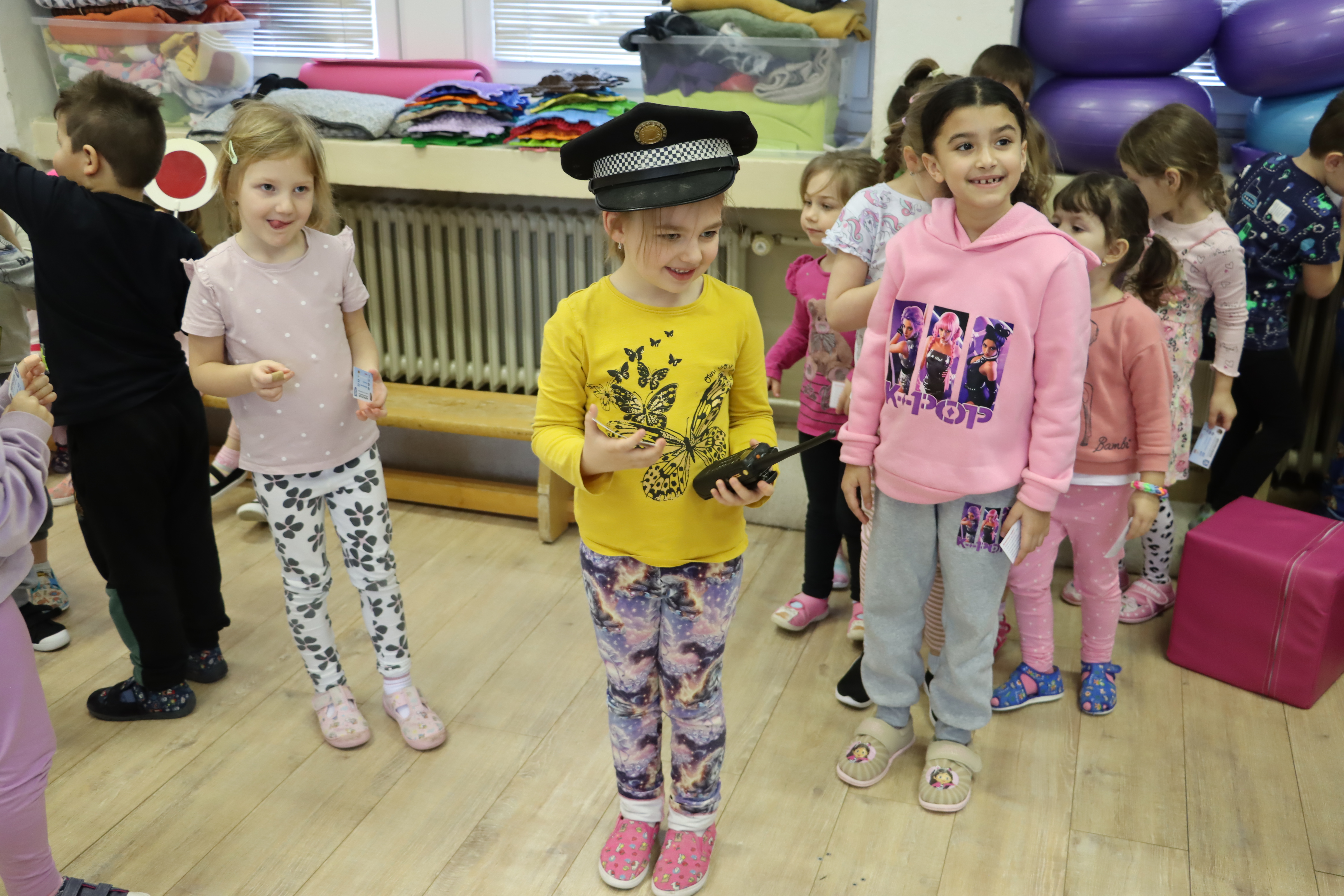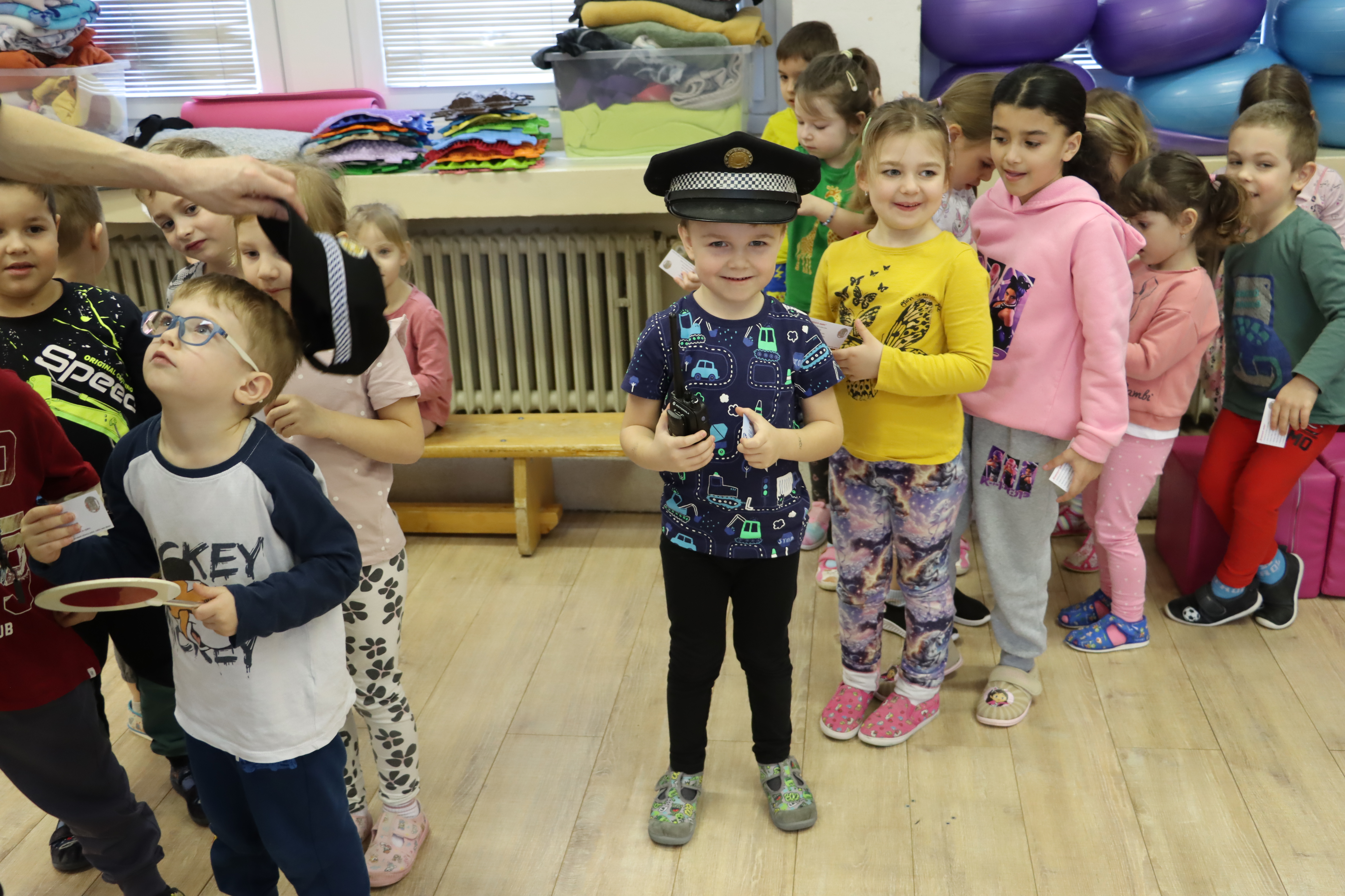 Pomocí pohádky o medvídku Brumlovi přiblížil dětem rizikové chování. Policista děti seznámil se služební uniformou a jejím příslušenstvím.